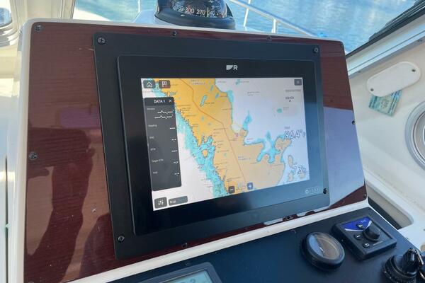 Sandpiper has a new Raytheon Axiom plotter. Bow & stern thrusters. Solar panel. Telescopic bimini supports plus a cockpit enclosure. Reverso oil change system.