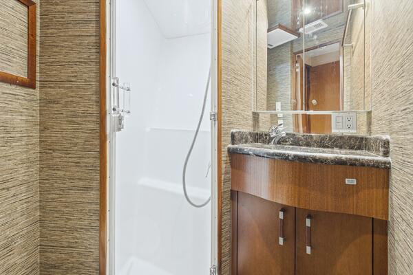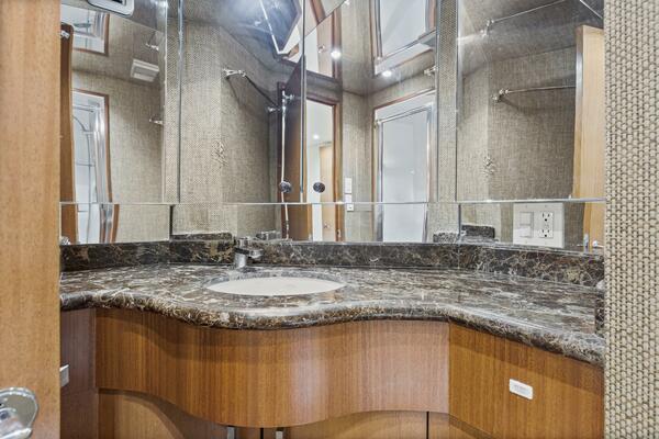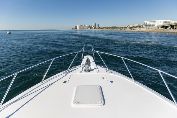 Beyond its impressive performance, this vessel offers four spacious staterooms and three well-appointed heads, providing comfortable accommodations for extended trips with family, friends, or crew. The interior is elegantly finished with custom woodwork, granite surfaces, and high-end amenities including surround sound, flat-screen TVs, and air conditioning throughout.