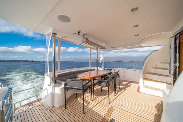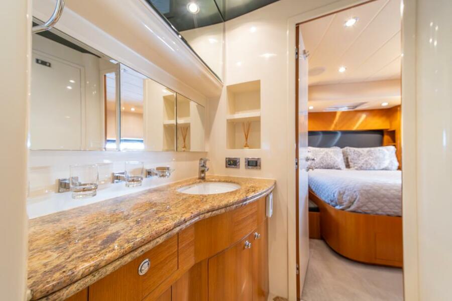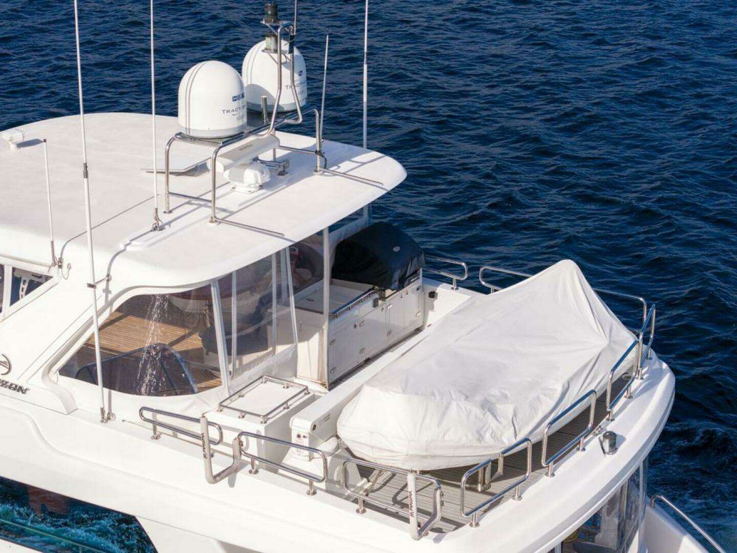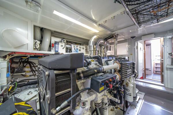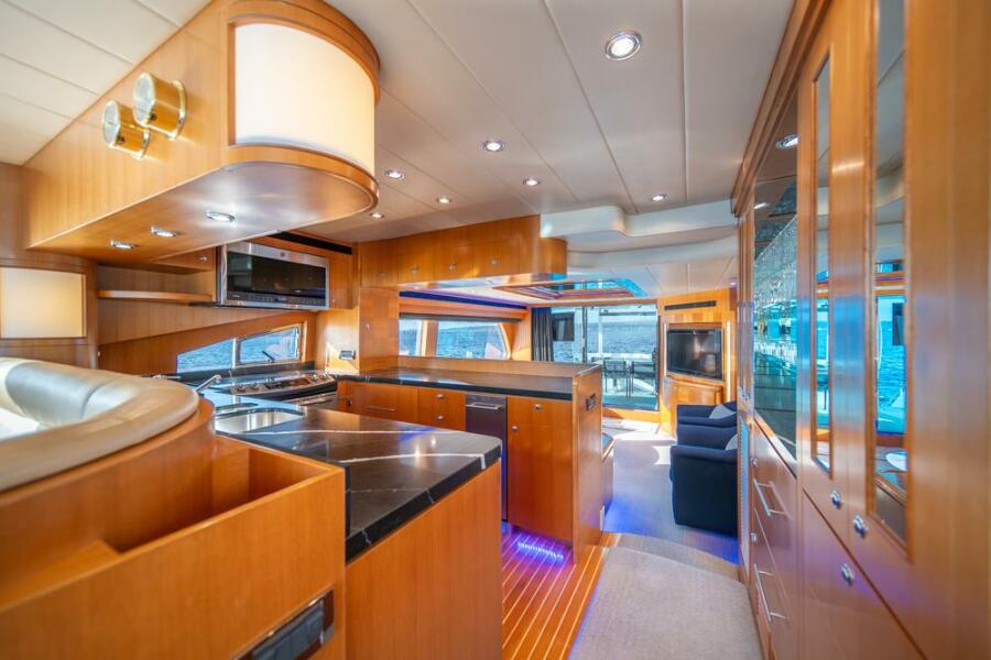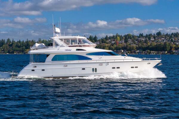 HORIZON 73' A MUST VIEW TO TRULY APPRECIATE For nearly 30 years, Horizon Yachts has defined, perfected and consistently exceeded the standards for design and craftsmanship with its range of 52 to 150-foot luxury motor yachts. As one of the largest yacht builders in the world, Horizon focuses on eight specialized series, each unique in style and function, and each designed and built to the highest standards to suit every customer's individual yachting lifestyle. Horizon Yachts employs the most advanced technologies, finest materials, and most talented designers in the world. Encompassing four manufacturing facilities-each ISO 9001 certified- Horizon Yachts provides a strong foundation for yacht building within a customer-oriented environment, where management and employees share a common goal. Horizon is committed to exceeding customer expectations and continuously improving upon the safety, design and construction of its yachts, while also keeping an eye on the future with new product development. With customer satisfaction, quality, durability, safety and value as the absolute minimum standards, Horizon Yachts is dedicated to bringing your yachting dreams to life. And this 2009 Horizon Fly Bridge Motoryacht 73' is no exception. Highlighted distinctions include the reliable Caterpillar C-18 1,001hp mains @ 2,300 RPM, ZF 550A gearboxes with 2.517:1 ratio, 2 Onan 21.5kW genset, ABT TRAC digital stabilizer fin system, ABT TRAC 12" 38hp hydraulic bow and stern thrusters, 2 Xantrex SW4024MC2 4kW inverter/chargers, Charles 5000 SP Series battery chargers, Full-Nav system including Furuno & Simrad electronics, MarineAir chilled water airconditioning/heat climate systems, Headhunter X-Caliber & Mach 5 AC & DC fresh water pumps, KVH Tracvision TV6 satellite TV antenna system, Starlink system V7IP satellite telephone system, Shore Power boost 50 transformer, 2-20 gallon hot water heaters, 2 Glendinning cable masters, Fuel polishing system, SeaRecovery Aqua Matic watermaker, Sea Vision underwater lighting and a Steelhead SM1500R yacht crane. Engines have had all the coolers serviced in the last year. Sun Covers on the bow and on top for the Aft deck. Accommodations SALON Polished stainless steel double sliding doors with curtains Cherry wood interior with custom burl accents Custom wood décor with burl inlays Frameless windows Custom two settee’s with built-in storage Custom settee table with Cherry wood and glass top Salon windows, light tinted with Bali “Silhouettes” Soft “Ultra Leather” headliner Ceiling feature with direct and indirect lighting with Cherry wood and burl inlay Custom carpeting with sound insulating pad AC/DC panel with digital amp/volt meter for the main level Samsung 43" LED HDTV 2-Sherbourn Technologies 275B Amplifiers Directv HD DVR receiver Denon AVR-786 AV Surround Receiver Sony SLV-D360P DVD Player/VCR (5) 8" mid/tweet overhead speakers and Pinnacle “Baby Boomer” powered sub MarineAir chilled water air-conditioning/heat thermostat Internal staircase to the crews quarters and engineroom-starboard side aft Glass upper cabinet for glassware with U-Line refrigerator and ice maker with Cherry wood face finish 4 Push button lower cabinet doors Halogen direct lighting Vimar switches NuTone central vac outlet 4-110v outlets PILOTHOUSE-LOWER HELM Custom wrapped biege ultra-leather console with burl inlay Custom polished stainless steel steering wheel with Horizon logo Caterpillar electronic engine displays Glendinning electronic engine controls Full navigational, video & audio electronics(refer to Electronics) TRAC Digital Systems stabilizer remote panel ABT TRAC 12" 38hp hydraulic bow & stern thruster controls Windlass remote control Danforth Constellation compass Sunshine HR-1012 searchlight remote panel Fireboy engine shutdown/override system remote panel Hart Systems tank tender 3-Headhunter TS 2500 Tank Sentry-water, starboard fuel & forward starboard fuel Hynautic trim tabs with analog indicator Stidd biege ultra-leather helm chair with arm and foot rest Panograph aircraft style starboard pilothouse door Side facing circular settee with built-in storage Cherry wood with inlay settee table MarineAir chilled water air-conditioning/heat thermostat 5 Defroster vents Speich windshield wiper system Halogen direct lighting Vimar switches Soft “Ultra Leather” headliner Cherry & holly sole NuTone central vac inlet 3-110v outlets FLYING BRIDGE-UPPER HELM Factory hardtop Flying bridge acrylic enclosure Custom FRP console Custom polished stainless steel steering wheel with Horizon logo Caterpillar electronic engine displays Glendinning electronic engine controls Full navigational, video & audio electronics(refer to Electronics) TRAC Digital Systems stabilizer remote panel Starlink system ABT TRAC 12" 38hp hydraulic bow & stern thruster controls Windlass remote control Ritchie Powerdamp Plus compass Windlass remote control Hynautic trim tabs with indicator Stidd upholstered helm chair with arm and foot rests L-shaped settee with built-in storage FRP hi-low settee table Molded staircase with teak steps to aft deck 2-Wetbar entertaining centers including U-Line icemaker and sink./ Second center includes U-Line refrigerator with icemaker, serving area and 2 drawers Non-skid FRP sole Seadek marine products sole(boat deck 2017) Halogen direct lighting Indirect lighting 110v outlet AFT DECK Aft deck hardtop Molded staircase with teak steps to boat deck Settee with built-in storage Teak wood settee table with two polished stainless steel pedestals Port side aft control wing station with Glendinning handheld remote with gears, ABT/TRAC bow & stern thruster controls and separate 2 engine start buttons PTZ camera 2-8" Fusion speakers Port & starboard side boarding doors Euro transom with port & starboard gates Teak deck sole-aft deck Halogen direct lighting Halogen courtesy lighting Vimar switches SWIM PLATFORM Oversized swim platform(ideal for entertaining) Teak deck sole Panogr