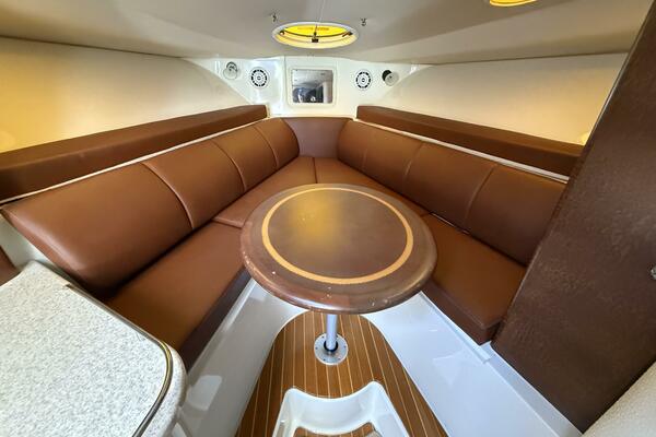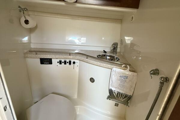 The 3500VX is the largest boat ever to bear the Hydra-Sports lightning bolt. This flagship is a solid, ocean going vessel with versatility from hardcore fishing to family fun. The oversized cockpit and rod storage for 30 rods attest to this boats fishability, while console air-conditioning vents, LCD television, and a bow sun pad give the 3500VX solid cruising credentials and extended live aboard ability. This boat is loaded with small extras that really set it apart from the pack, take for instance the optional hardtop misters that spray a cool mist of water on the cockpit and helm. The cabin coffee maker, Corian countertops, deluxe Pompanette helm chairs with a glove box between them, underwater lights, and even a bow thruster to help you dock perfectly in less than perfect conditions.