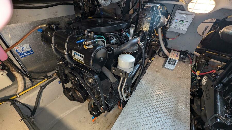 This boat has been kept in fresh-water until this year, when it came to CA. It is in excellent condition with fresh canvas, fresh bottom paint, and low hours on the engines. A survey back in May gave both engines & generator a clean bill of health, with good compression on all cylinders. The tender & outboard are new this year.