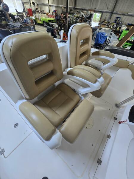 2008 Robalo R300 powered by twin 2021 twin Yamaha F300 Four Stroke Engines with 394 hours! Twin Simrad NSSEVO3’s Chart plotter, Depth sounder with Halo 20+ Radar, ACR Remote Control Search Light, Minn Kota Riptide I-Pilot with 112 lb thrust, 2016 Owens & Sons Marine, Inc. Aluminum Triple Axle Trailer.