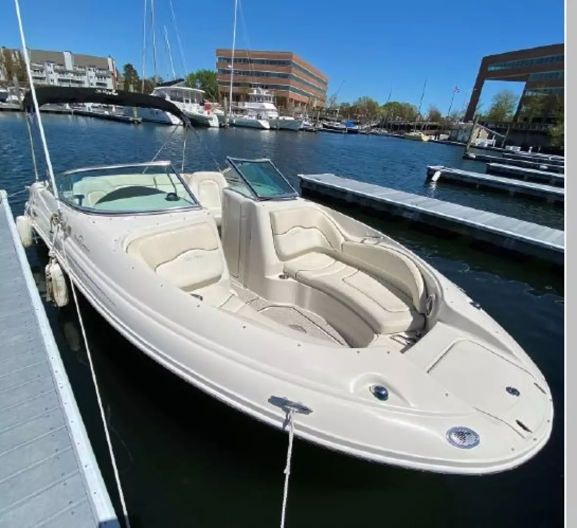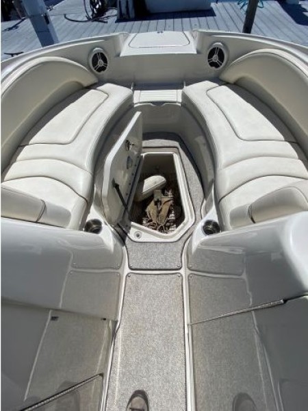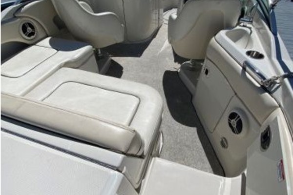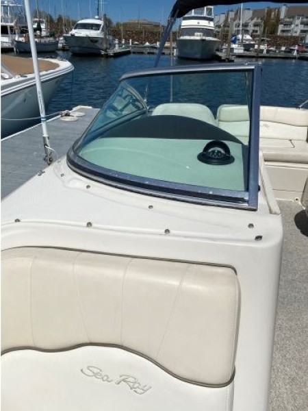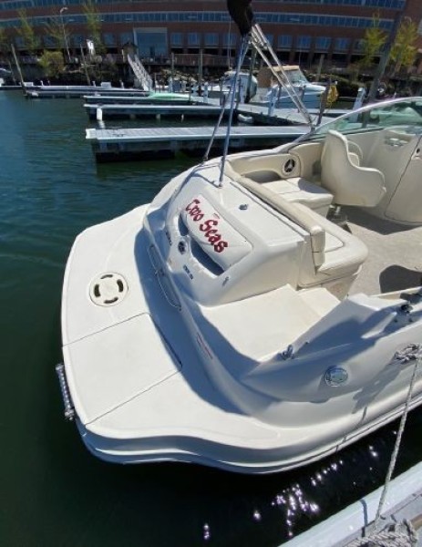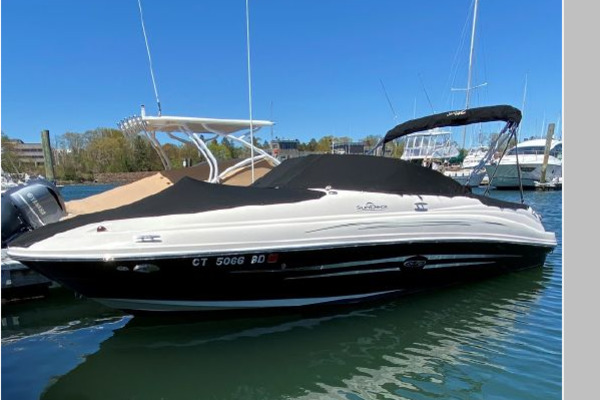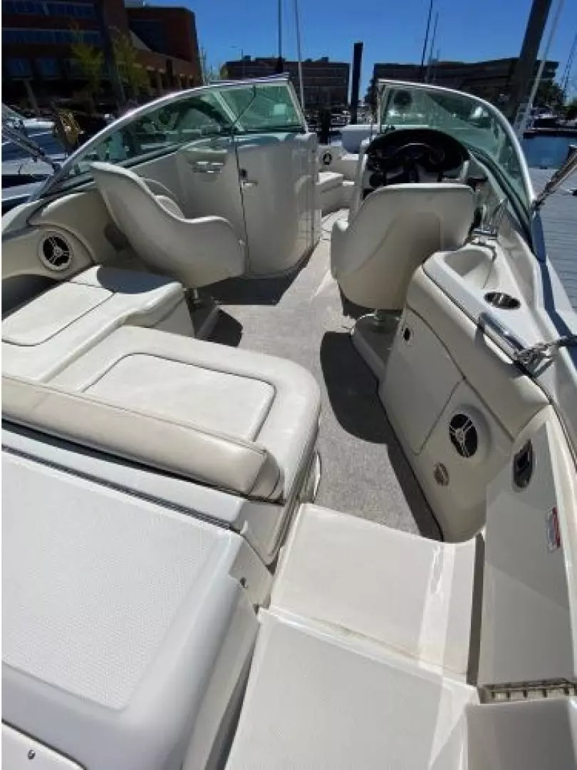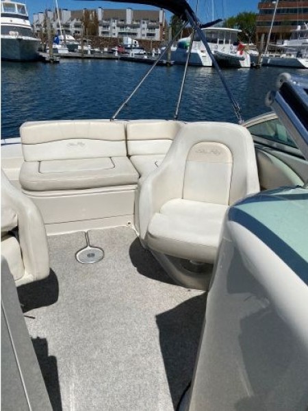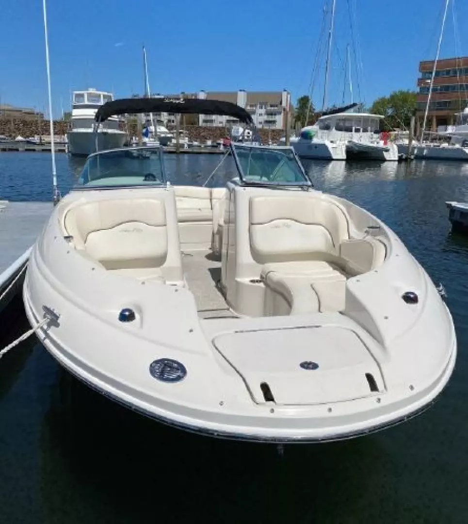 Clean. Sharp. Ready to go! Slip included. This fun-loving Sea Ray 220 Sundeck is a great looking boat with many of the amenities normally found on larger boats. A wet bar, fully enclosed head, transom shower, large swim platform and enormous bow seating area make this a perfect boat for skiing, fishing, or just cruising to a restaurant. Able to accommodate 10 people, the Sea Ray 220 Sundeck is comfortable, well-laid out and offers lots of storage and easy access to the 260-hp MerCruiser that puts out power to spare (and only has 193 hours!).