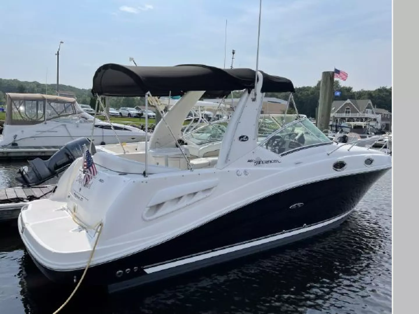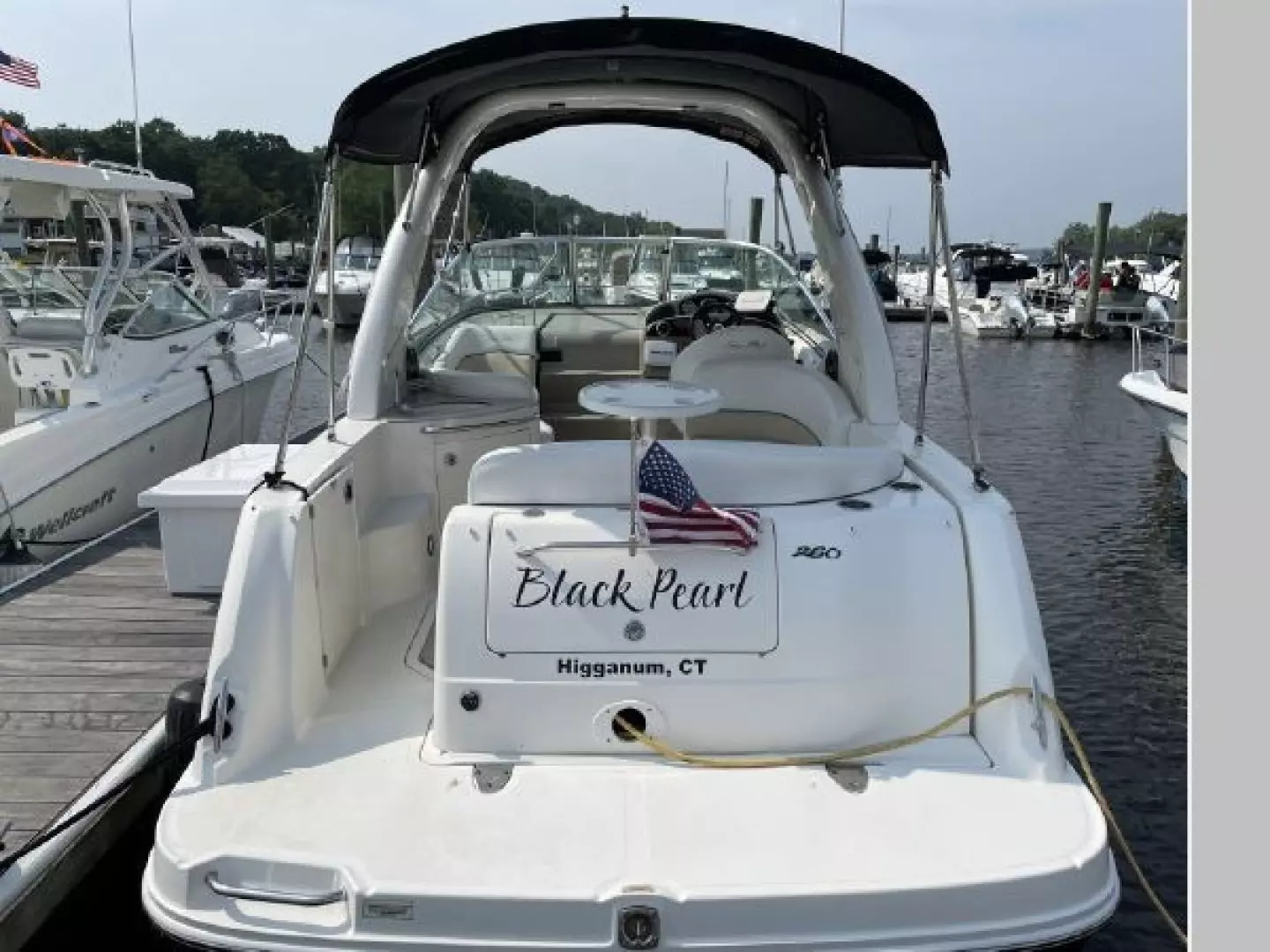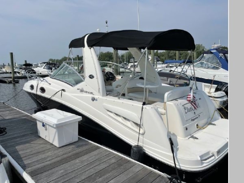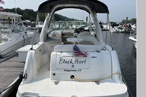 "Black Pearl" is a beautiful looking Sundancer that looks like it is brand new, super clean and well maintained. Powered by an upgraded single 6.2L Mercruiser with Bravo III outdrives with 770hrs. All maintenance records completed by the marina. 3-owners, Always kept in fresh water, came from Lake George and kept in CT River for the last 6 years. This MUST-SEE Sea Ray 260 is turn key and ready for weekend getaways or just relaxing with friends and family.
