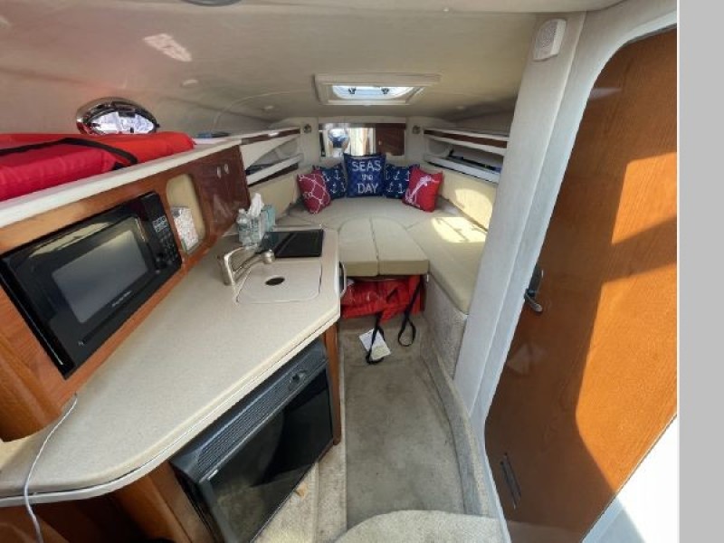 The sleek design is only one of the many premium upgrades we've made on this roomy 260 Sundancer. Typical Sea Ray ergonomics designed throughout make this boat rival any other in its class. We've also added a translucent deck hatch with locks and sky screen cover, plus a transom storage compartment with gas-assisted lid. It's the best boat in its class, with all the extras you would expect from a much larger, more expensive cruiser.