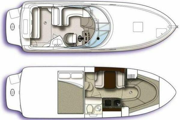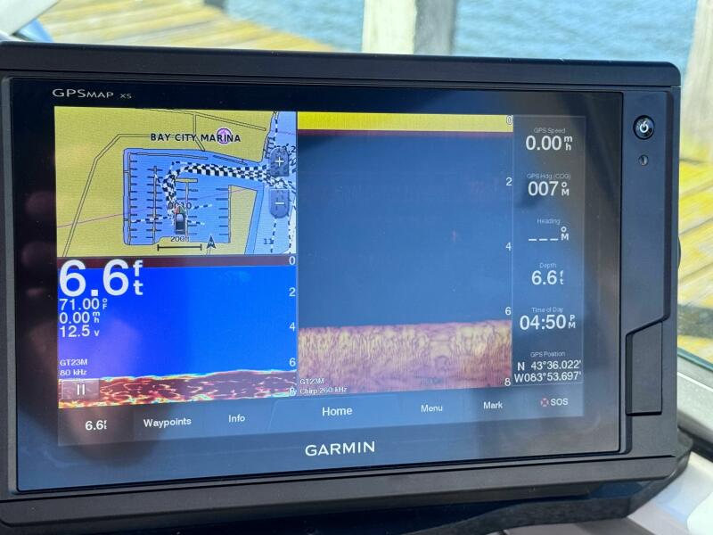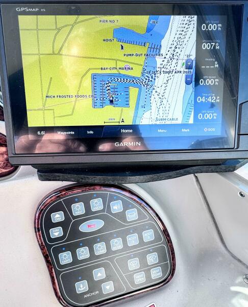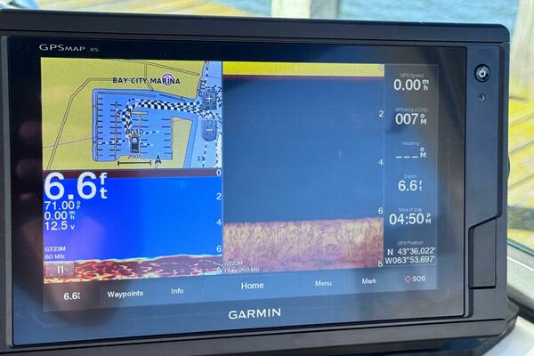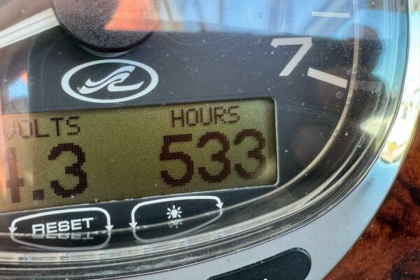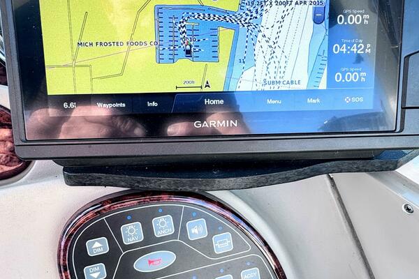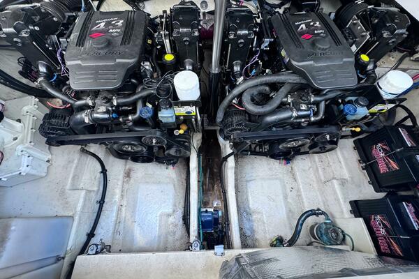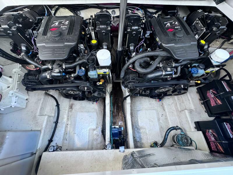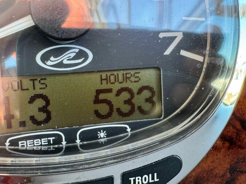 ONLY 535 HOURS on Twin V-6 Mercruisers - 220 HP Each. Substantially upgraded Garmin GPS Plotter with 3-D fishfinder/depth sounder Bluetooth stereo 22" Smart TV in Salon Air conditioning WINDLASS Convertible slope back canvas Recent survey in 2024