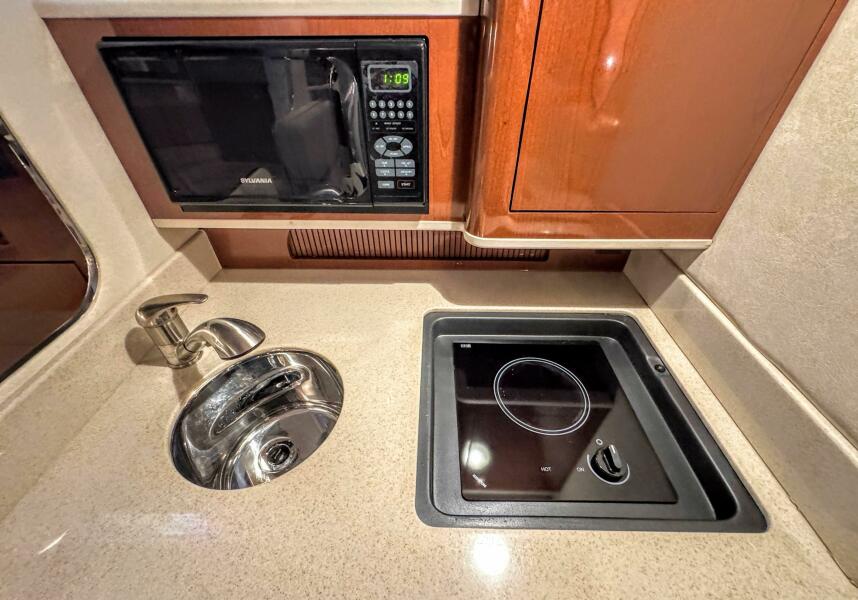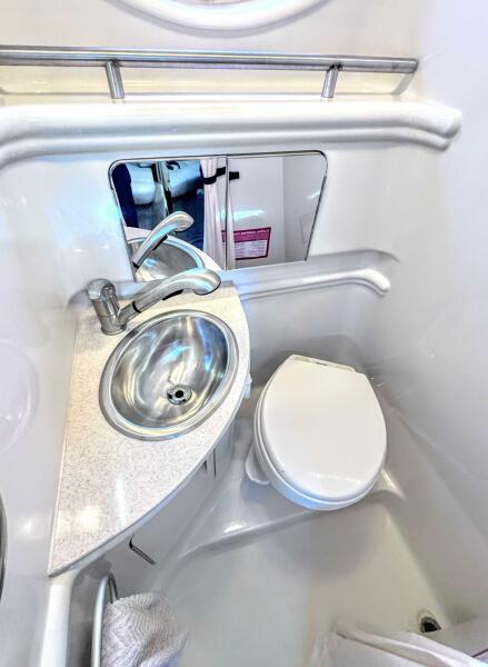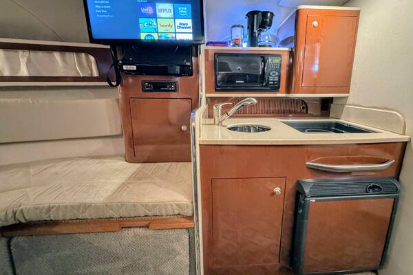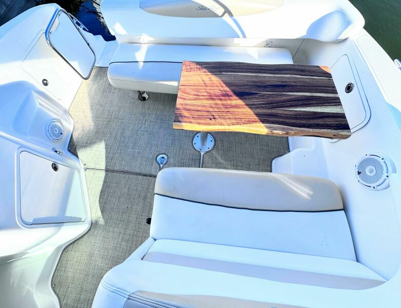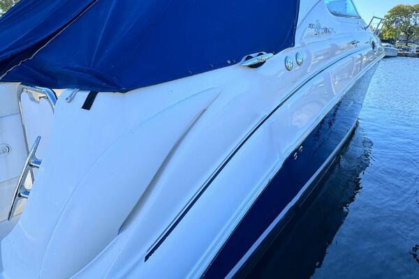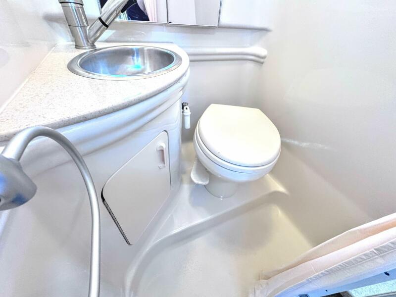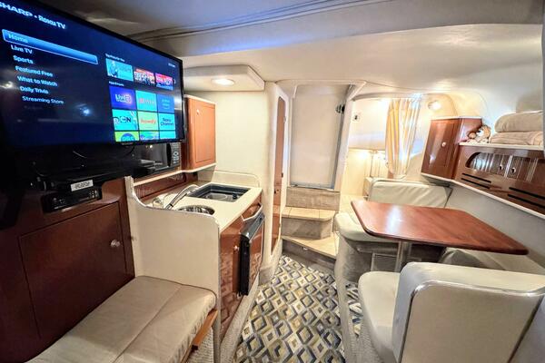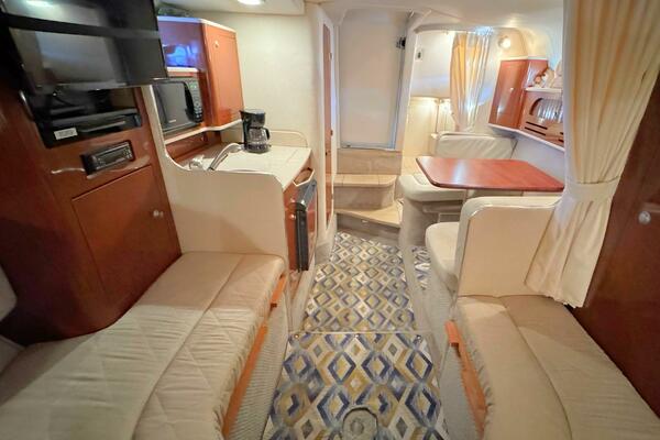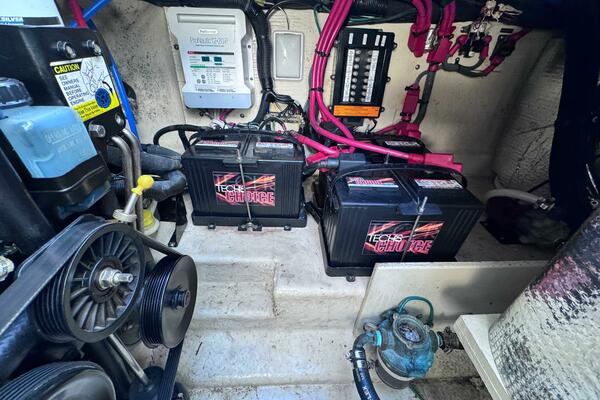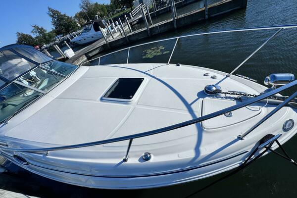 ONLY 535 HOURS on Twin V-6 Mercruisers - 220 HP Each. Substantially upgraded Garmin GPS Plotter with 3-D fishfinder/depth sounder Bluetooth stereo 22" Smart TV in Salon Air conditioning WINDLASS Convertible slope back canvas Recent survey in 2024