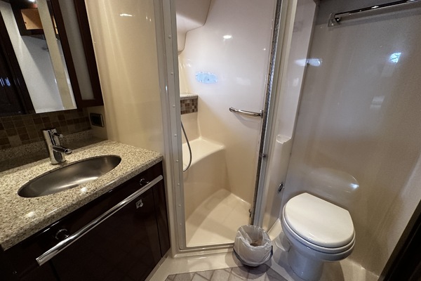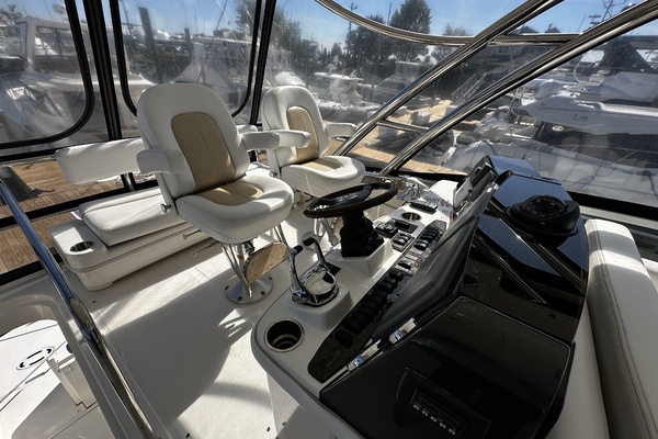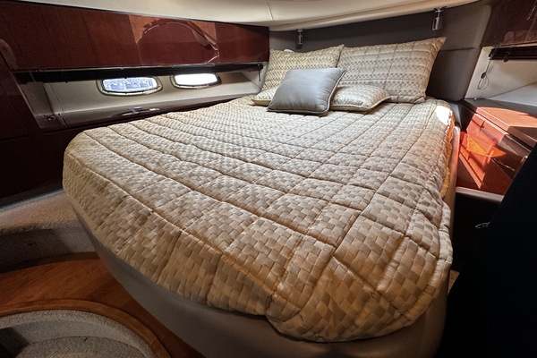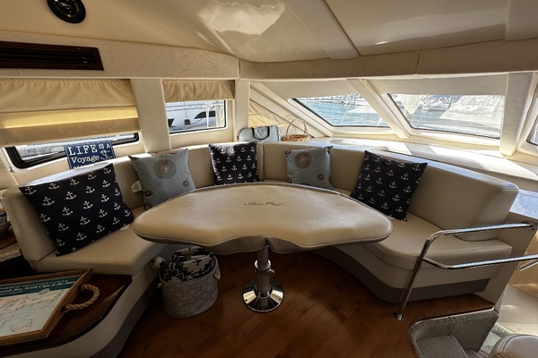 Step inside to discover a world of refined comfort, featuring plush seating, custom cabinetry, and a state-of-the-art entertainment system. The carefully designed interior creates a peaceful retreat where you can unwind after a day of fun on the water.