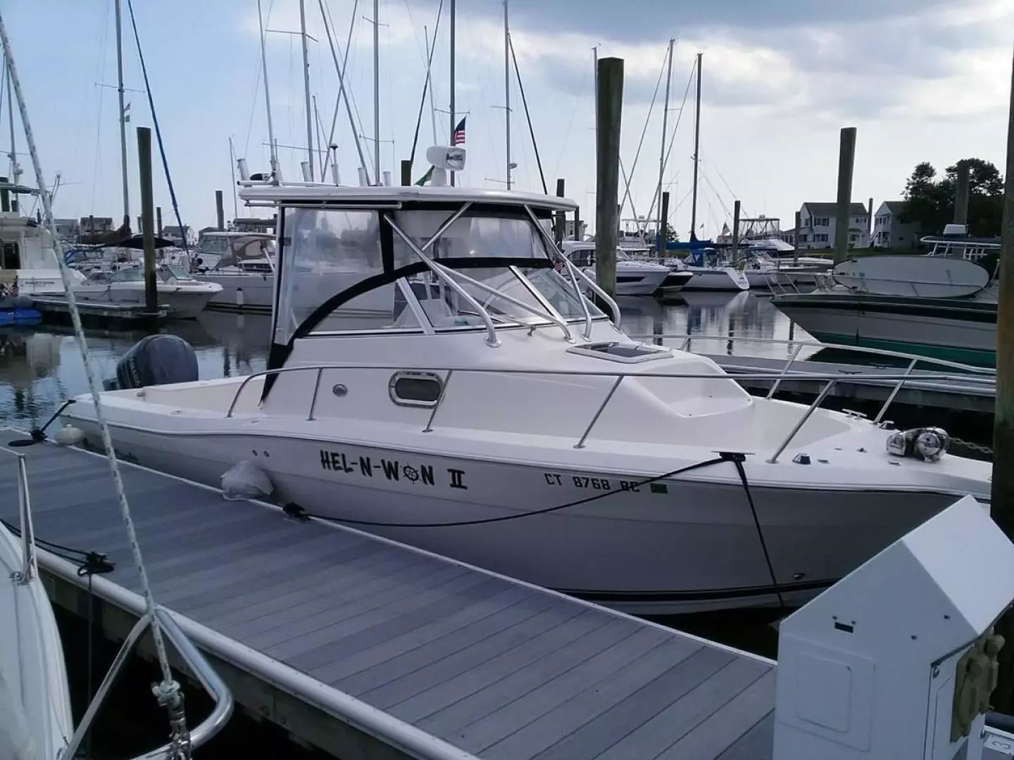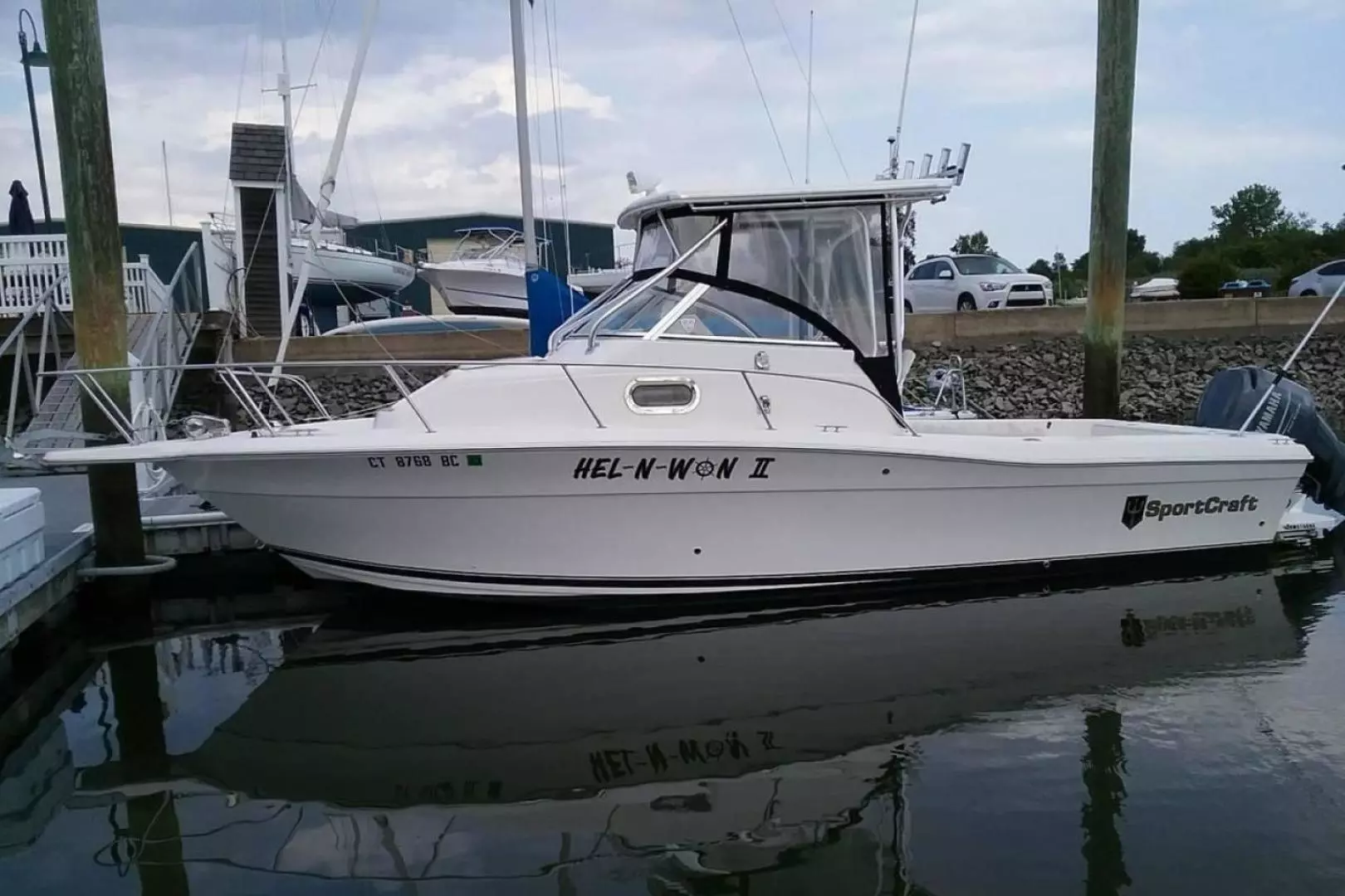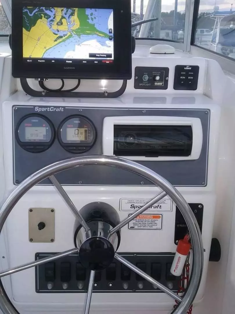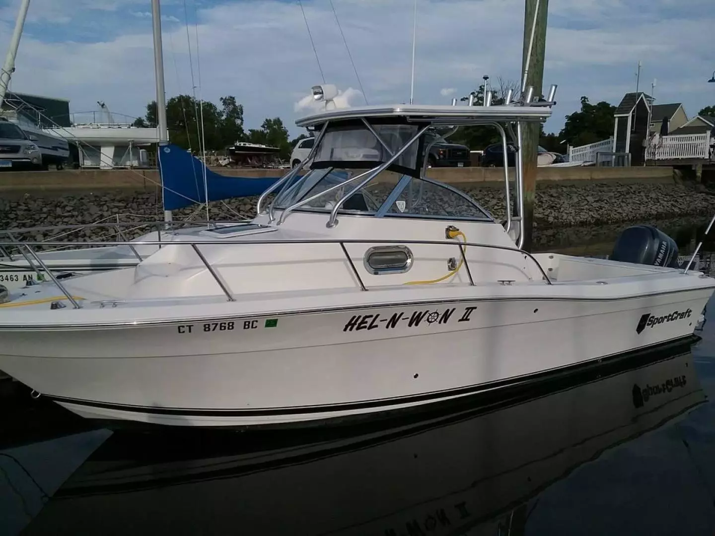 A one-owner Sportcraft 241 Walkaround equipped with anchor windlass, Hardtop w/ 3 side enclosure, live well, cockpit sink, Garmin GPS/fishfinder, and VHF radio, Cabin sleeps two with icebox, sink, marine head and a TV. 225hp 2008 four stroke Yamaha w/ just 556 hours. Includes a nice tandem trailer