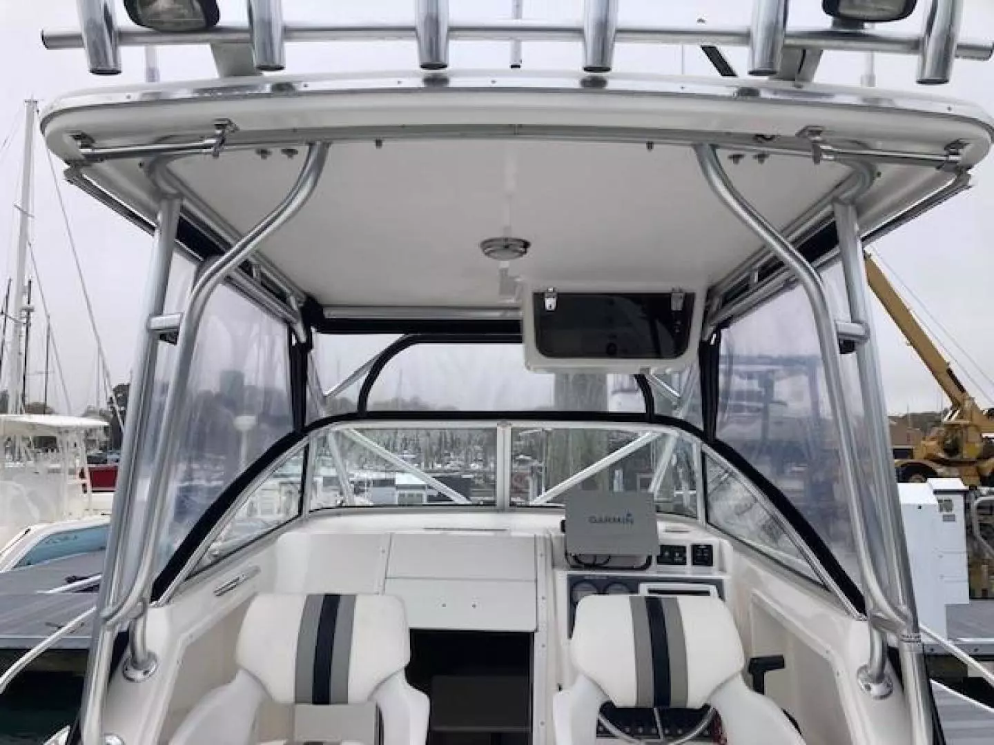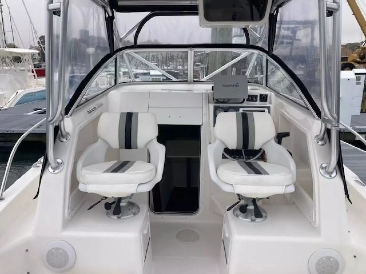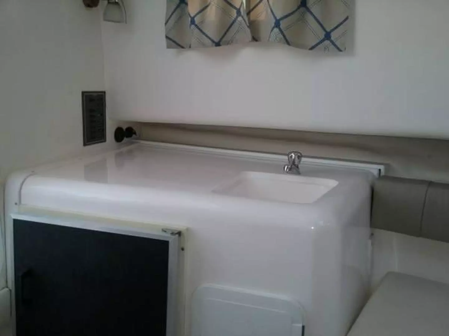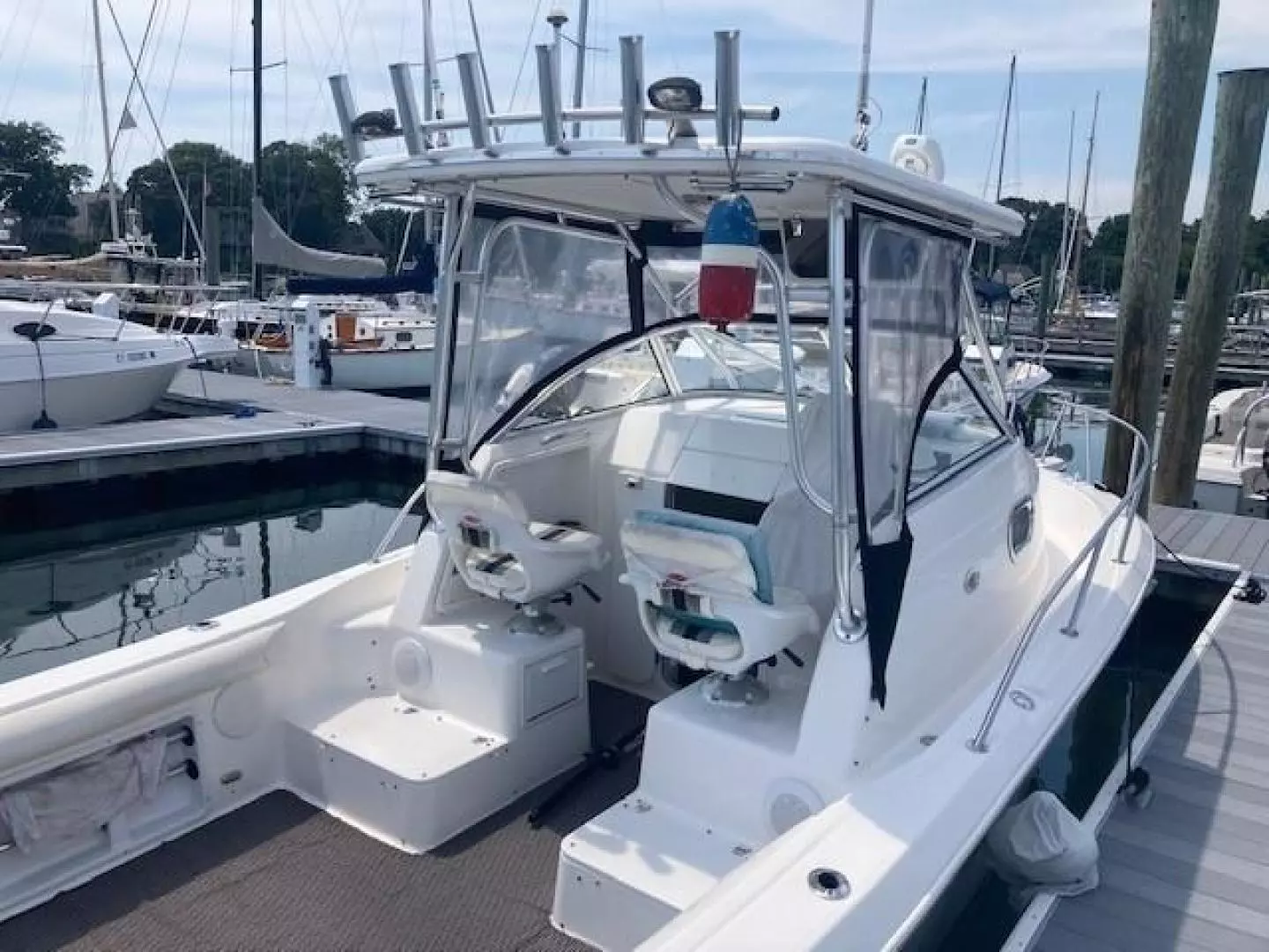 A one-owner Sportcraft 241 Walkaround equipped with anchor windlass, Hardtop w/ 3 side enclosure, live well, cockpit sink, Garmin GPS/fishfinder, and VHF radio, Cabin sleeps two with icebox, sink, marine head and a TV. 225hp 2008 four stroke Yamaha w/ just 556 hours. Includes a nice tandem trailer
