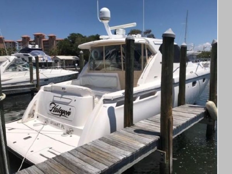 "Halcyon" is an impeccably maintained example of Tiara Yachts extremely popular 4300 Sovran. Pride of ownership shines throughout. Halcyon is powered by the twin Volvo 600 IPS option with many pod upgrades completed and only 900 hours on each motor. The Volvo IPS package makes for economical cruising and exceptional performance on this model.