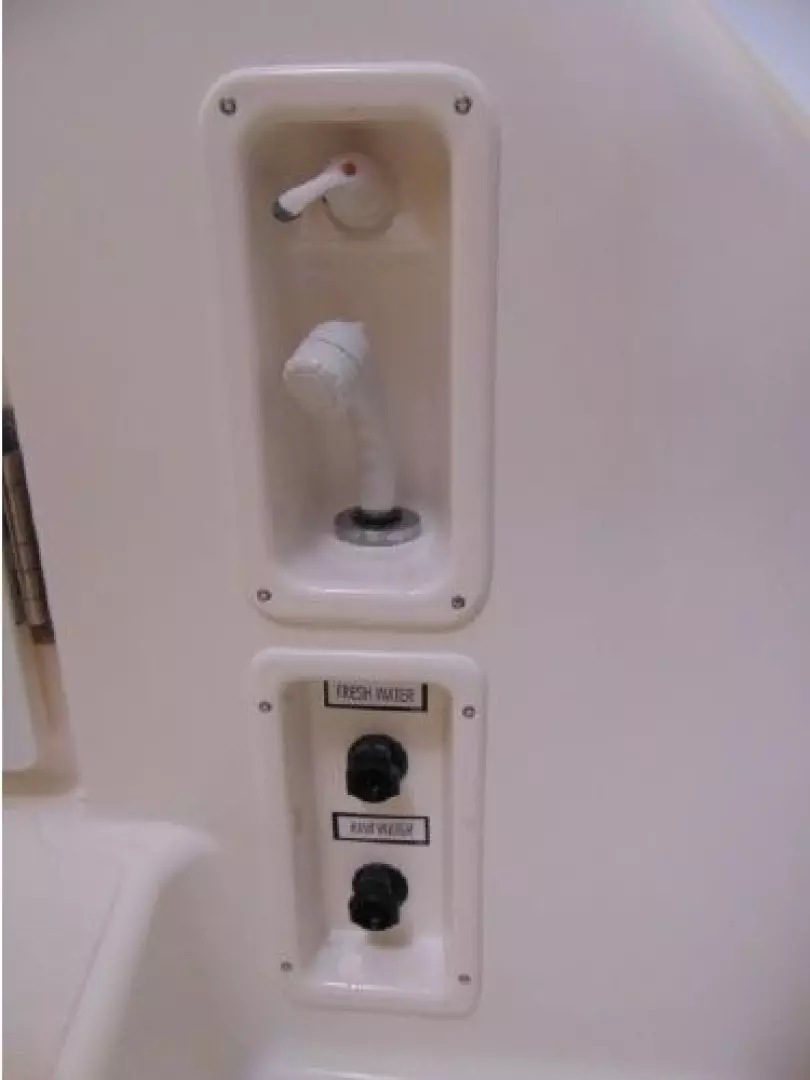 As you board Halcyon's large swim platform, you'll notice the St Croix davit system perfect for stowing a tender and still maintaining ample room to pass through the transom door. The adjacent cockpit shower offers the perfect opportunity to rinse down after a day at the beach.