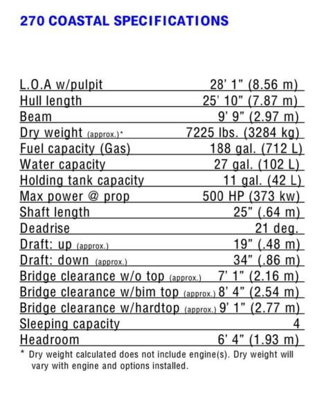 With an overall length of 28.08 feet, this boat boasts a robust fiberglass hull featuring a Deep Vee shape, ensuring stability and performance in various sea conditions. Powered by twin Yamaha outboard engines, each delivering an impressive 300 horsepower, this boat promises exhilarating speed and reliability. With only 1300 hours of use, these engines are ready for countless fishing trips and explorations. The Wellcraft 270 Coastal is equipped with a convenient head, enhancing comfort during longer outings. Its thoughtful design includes essential features for an enjoyable experience on the water. Whether you're casting lines or cruising with friends, this vessel is an excellent choice for avid anglers and leisure seekers alike. Experience the thrill of saltwater fishing with this well-crafted boat, built for performance and adventure.