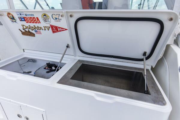 - Large, Insulated In-Deck Fishbox with Macerator