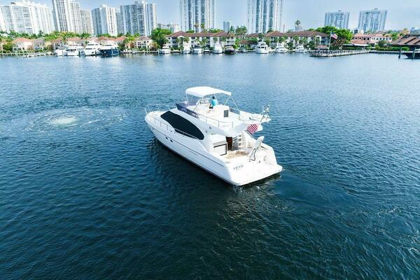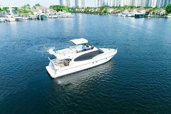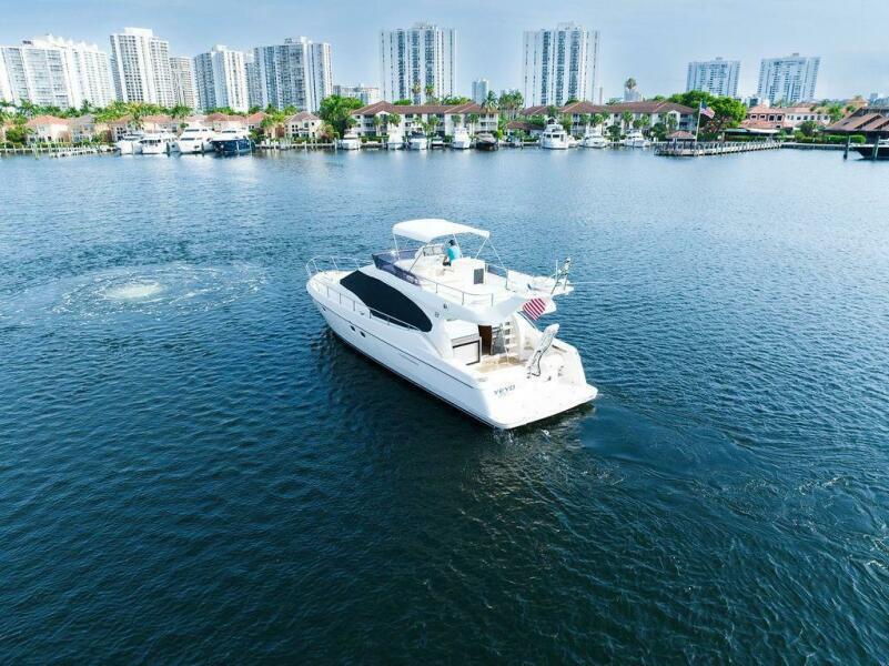 Ferretti 470 combines Italian design with clever space optimization and panoramic windows. 3 staterooms, 2 heads, bow & stern thrusters, new Garmin electronics, new A/C, flooring, audio, and Bimini. Located in Aventura, FL — priced to sell, offers encouraged.