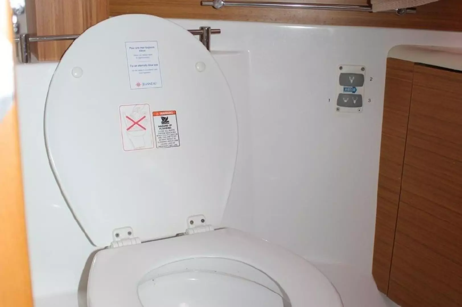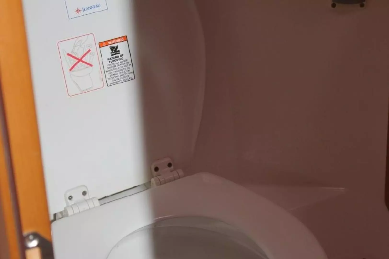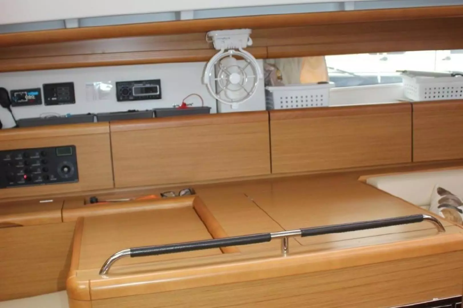 Large storage areas located behind helm & port across from table
