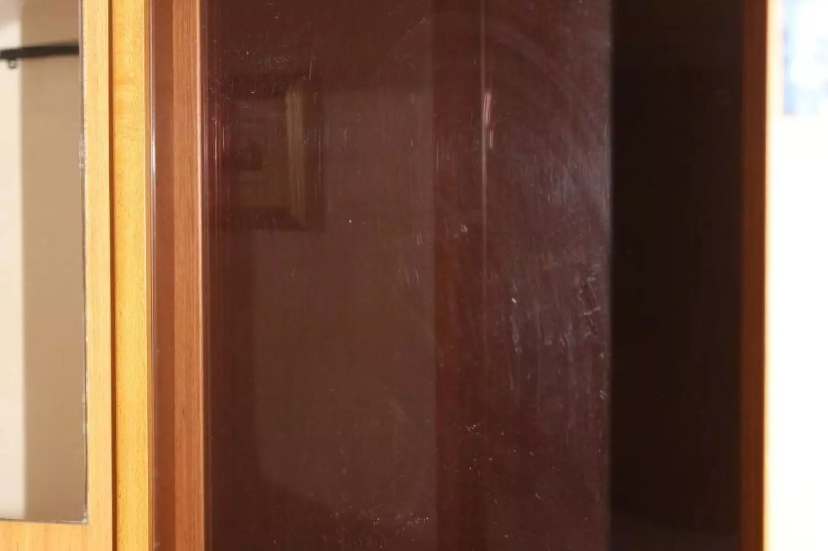 Glass separator between galley counter and salon