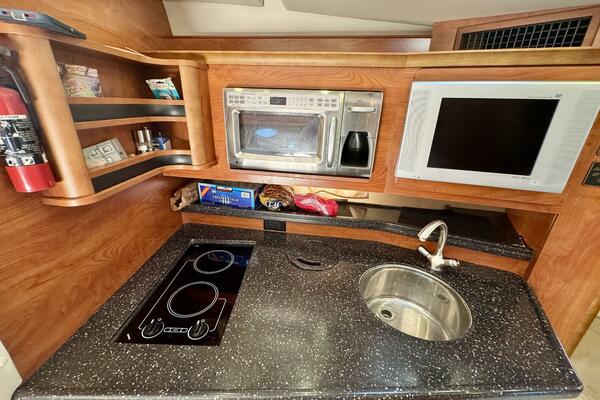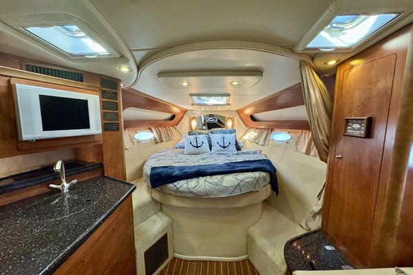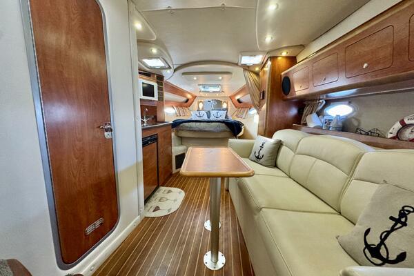 Powered by twin Volvo Penta 5.7L Gi engines with only 880 hours, this boat delivers reliable performance and smooth cruising whether you’re spending the day on the water with family or heading out for an extended weekend getaway. With regular, professional maintenance throughout its life, you can step aboard with confidence knowing this cruiser has been meticulously cared for.