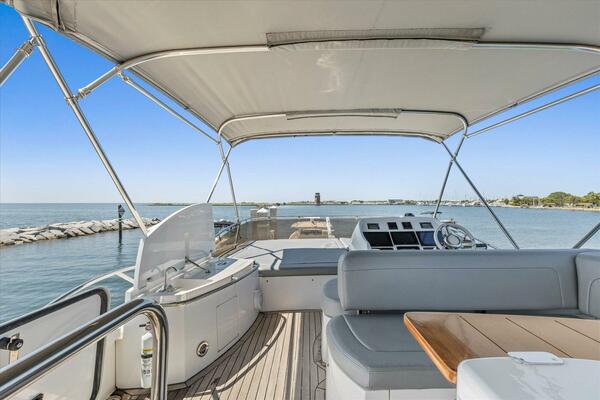 - Custom extended flybridge Bimini