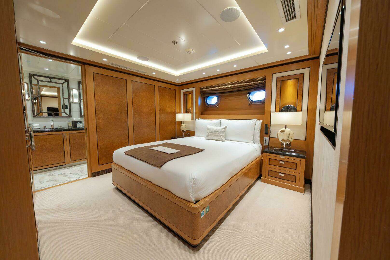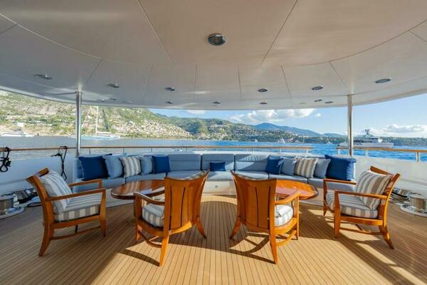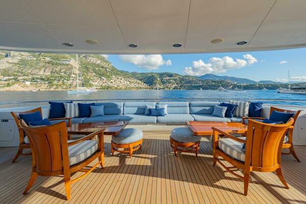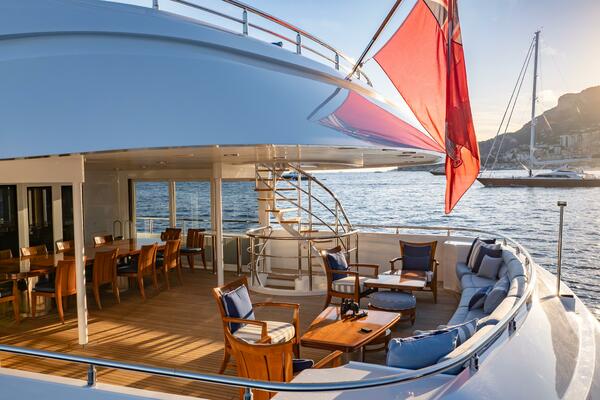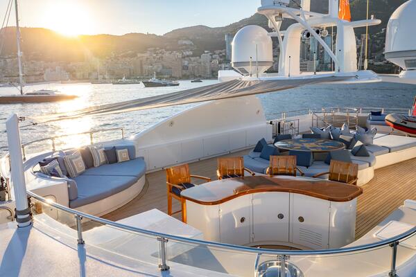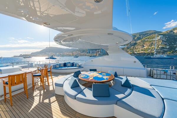All the way forward, the jacuzzi commands a spectacular vantage point and is flanked by two private seating niches—perfect hideaways that stay connected to the energy of the deck without being exposed.