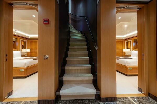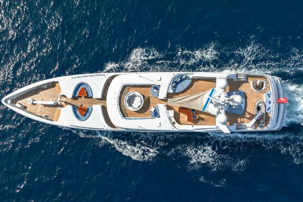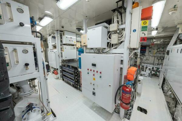 This is not “high hours”; this is proven hours backed by one of the most exhaustive mechanical interventions in the vessel’s life—building on the 2016 refit, during which both generators were replaced, the extensive 2021 works, and the most recent 11-month, €3.2M refit period that completed the full 15-Year Class Survey and renewed every major mechanical, structural, electrical, and tank system onboard. As part of this program, we also removed the tender cradle and reconfigured the aft lower-deck arrangement, adding an additional cabin for crew or supernumeraries and transforming the area into a dedicated aquatic water sports center and mini beach club. And let’s not forget the new sundeck Jacuzzi. Here are some, but not all, of the items addressed in this most recent refit.