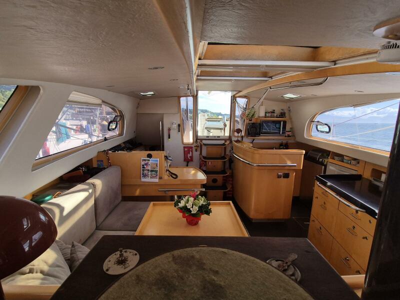 Recent upgrades include new standing and running rigging, runners and second forestay, solar panels with regulators, Schenker water maker, through-hull fittings, Viking six-person life raft and fresh antifouling.