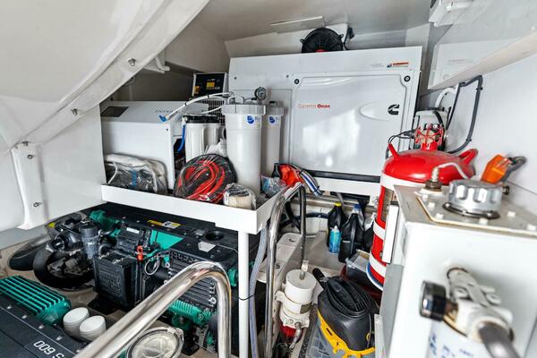 - Swim platform lift on/off switch, tethered remote, and tender winch remote
