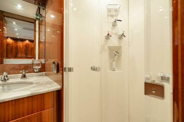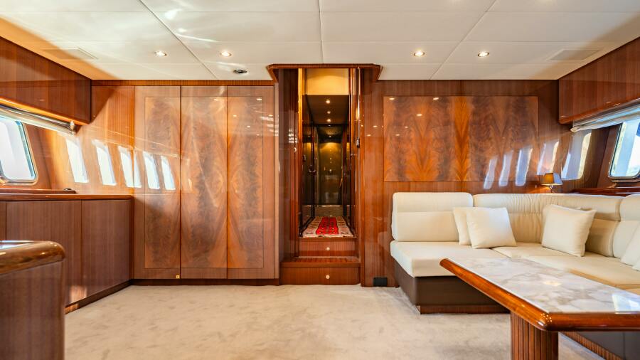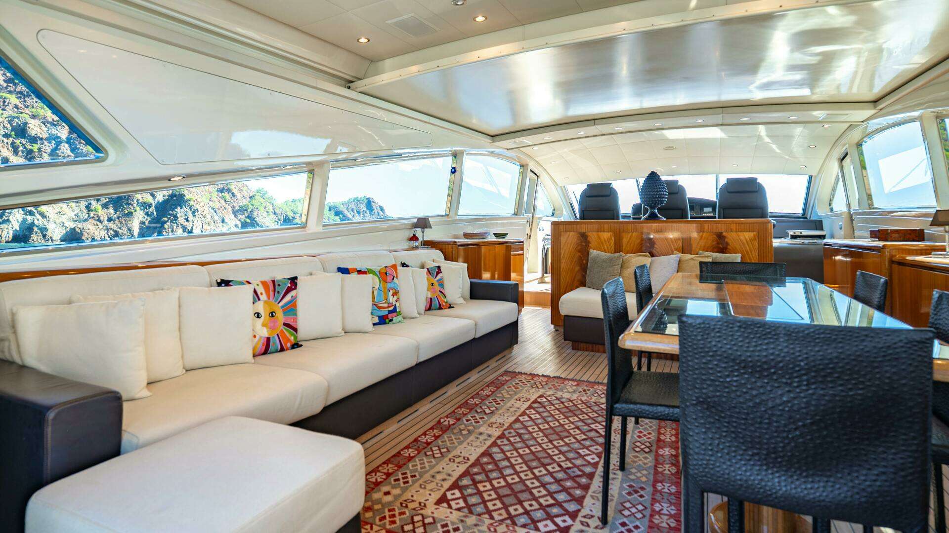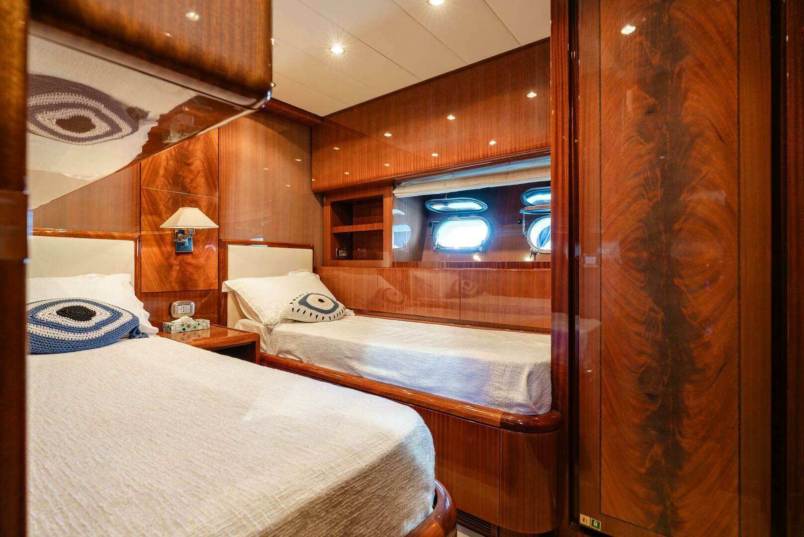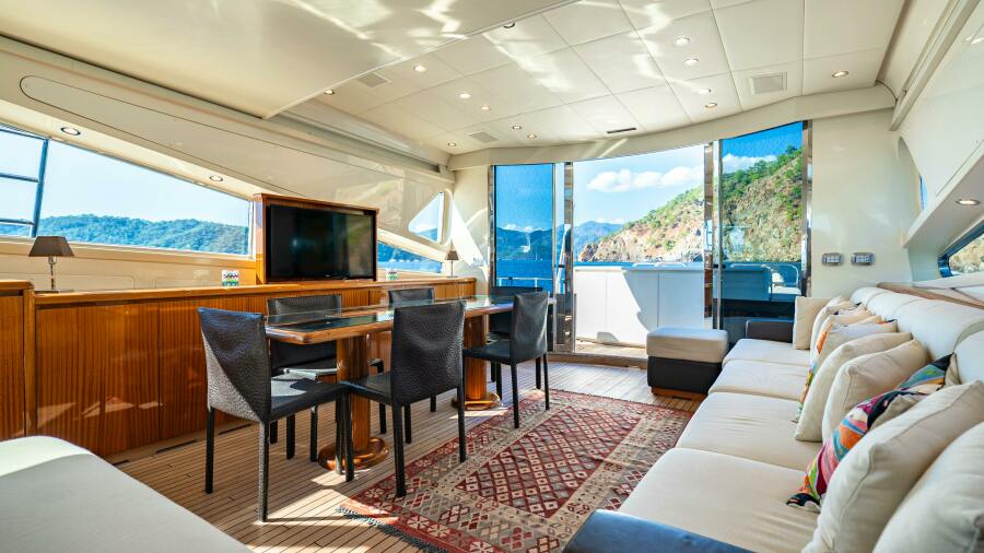 The yacht’s interior is a harmonious blend of elegance and functionality, offering a master suite and additional guest cabins to comfortably accommodate up to seven guests. Every space has been designed to enhance the onboard experience, with clever layouts that combine privacy, relaxation, and entertainment.