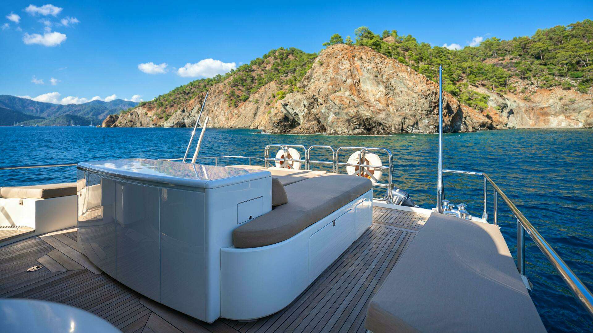Her expansive exterior deck areas provide an ideal setting for al fresco dining, sunbathing, and social gatherings. Whether anchored in a secluded bay or cruising along the Mediterranean, Clarita’s foredeck, aft deck, and lounging spaces allow guests to enjoy every moment on the water in style.