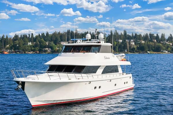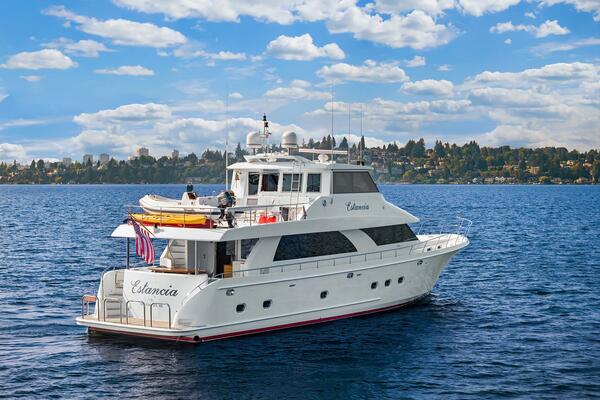 Introducing ESTANCIA an extraordinary skylounge motor yacht in impeccable condition and ready to cruise. Fully equipped with Caterpillar engines and featuring a tremendous interior volume, you will be impressed with the comfortable accommodations of three ensuite staterooms plus two crew staterooms with a private aft deck entrance. Don’t miss out on this rare opportunity to be the next owner of ESTANCIA.