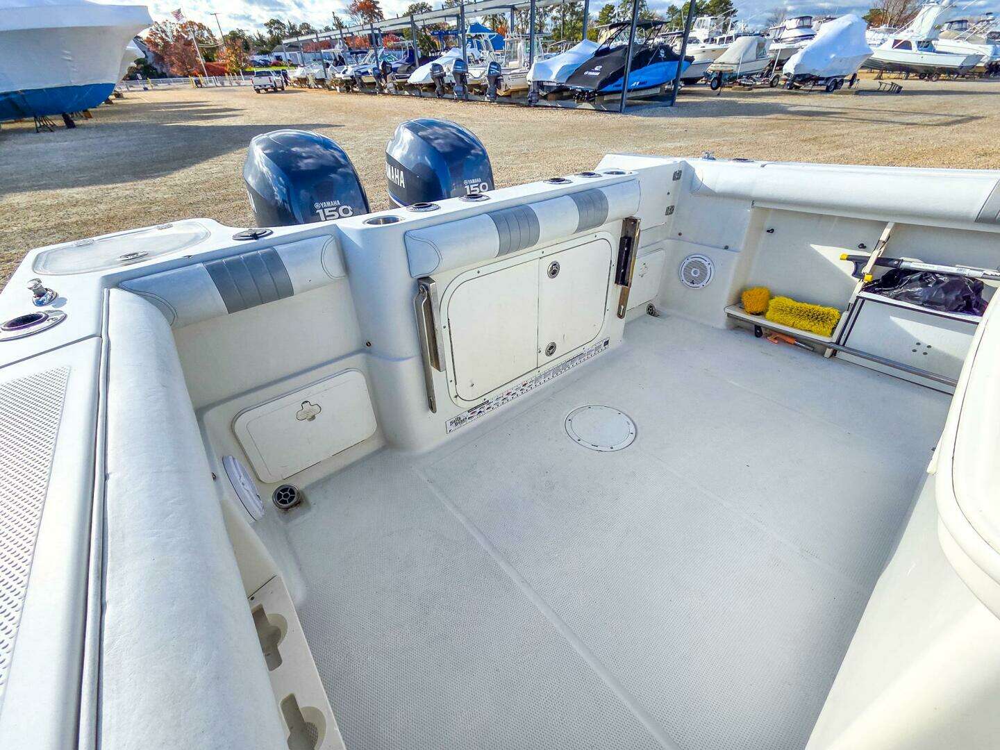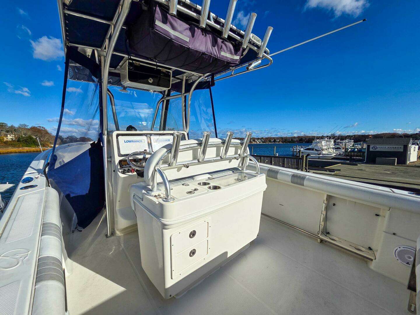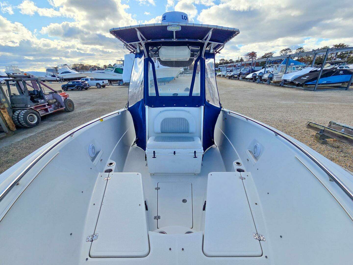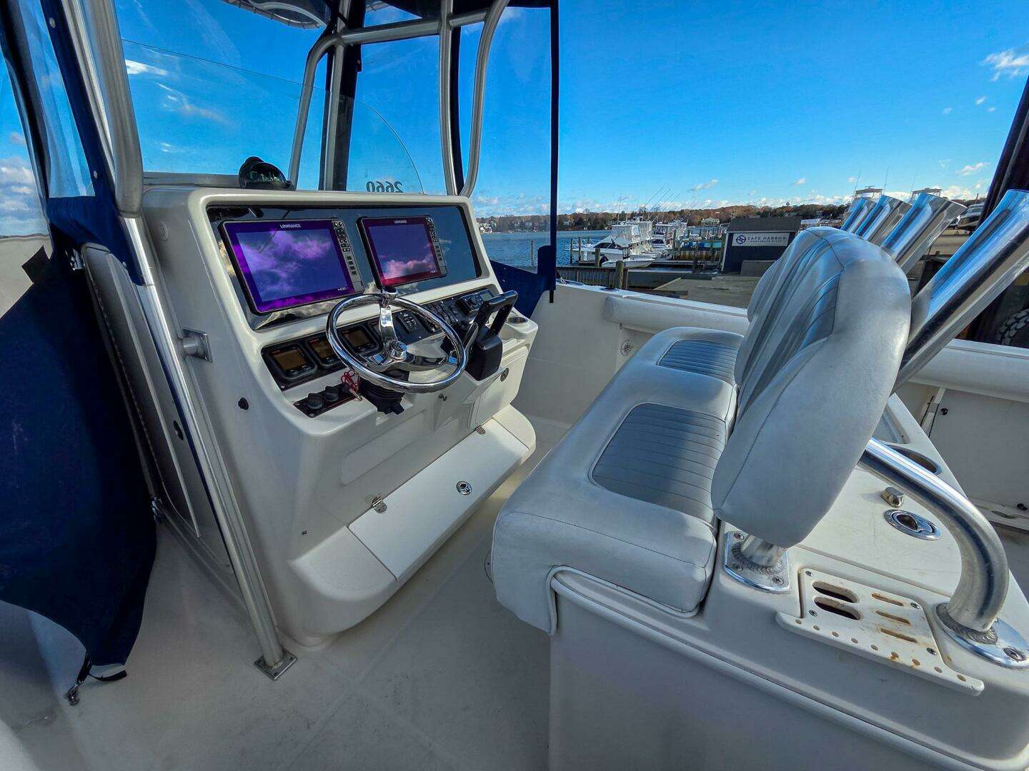 Boat shows very well and has been well cared for. New electronics upgrades and side curtains make this a joy to run in any condition. Outboards were winterized - lower units missing from pictures but are definitely included and no issues with them.