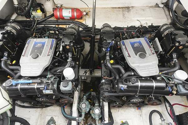 - Powered by twin Mercruiser 5.0 MPI engines paired with the Bravo III outdrives. 500 hours