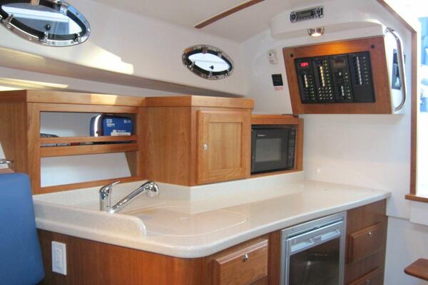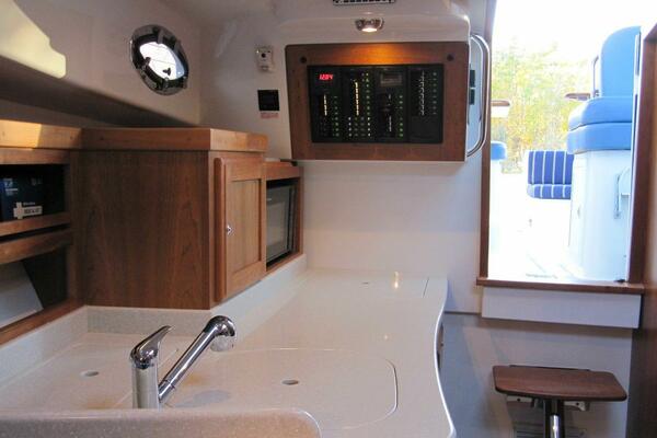- Helm deck trim package - wood trimmed wheel, cherry battens on overhead, trim on dash and additional helm deck table