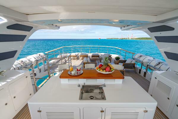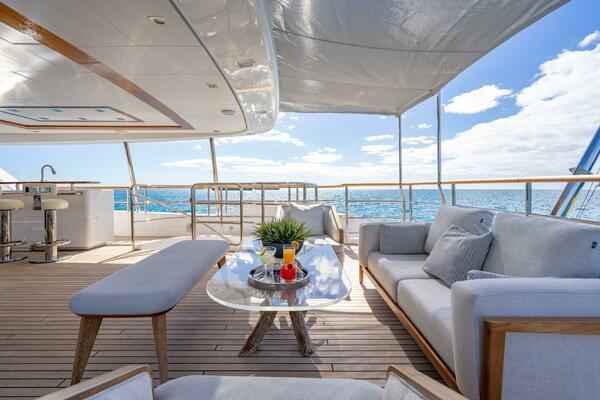 - Improved interior and exterior seating arrangements for entertaining with four separate bars and three different dining spaces located across her decks.