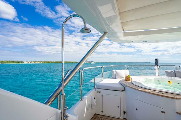- The upper deck was extended 3' and all exterior decks were upgraded to thicker teak.
