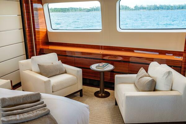 - 2021-2022: Complete interior redesign by acclaimed designer Patrick Knowles costing over $2M. This included replacement of nearly all interior and exterior furniture and softgoods, as well as electronics: (5) Garmin 8622s at the helm and two 8610 and both captain and crew quarters.