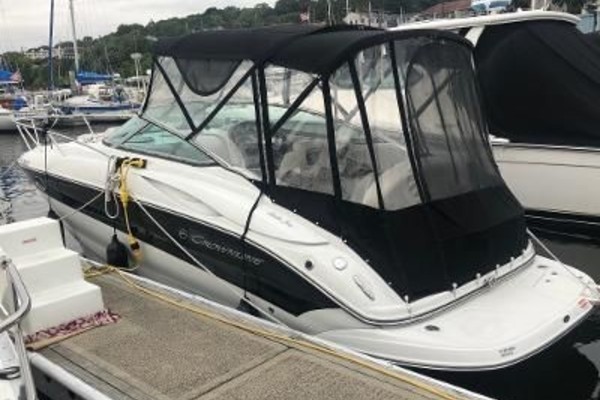 The profile is sleek and powerful. The 260 CR cockpit has an aft bench seat that converts to a full sunbed. The double helm seat can be rotated 180 degrees to face the rear for a great conversation area. Below deck a host of amenities make overnighting a pleasure. A dinette converts to a V-berth sleeping area. The galley has custom countertops, ceramic cooktop and cherry wood cabinetry. The lighted and vented head includes a shower, sink, vanity and porcelain toilet.