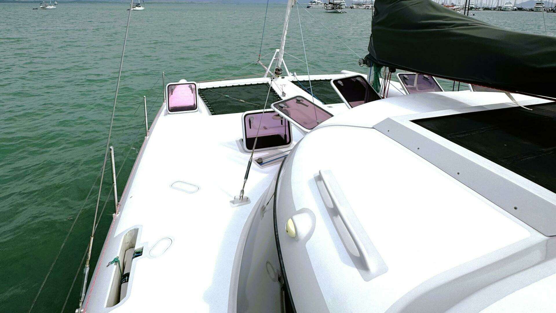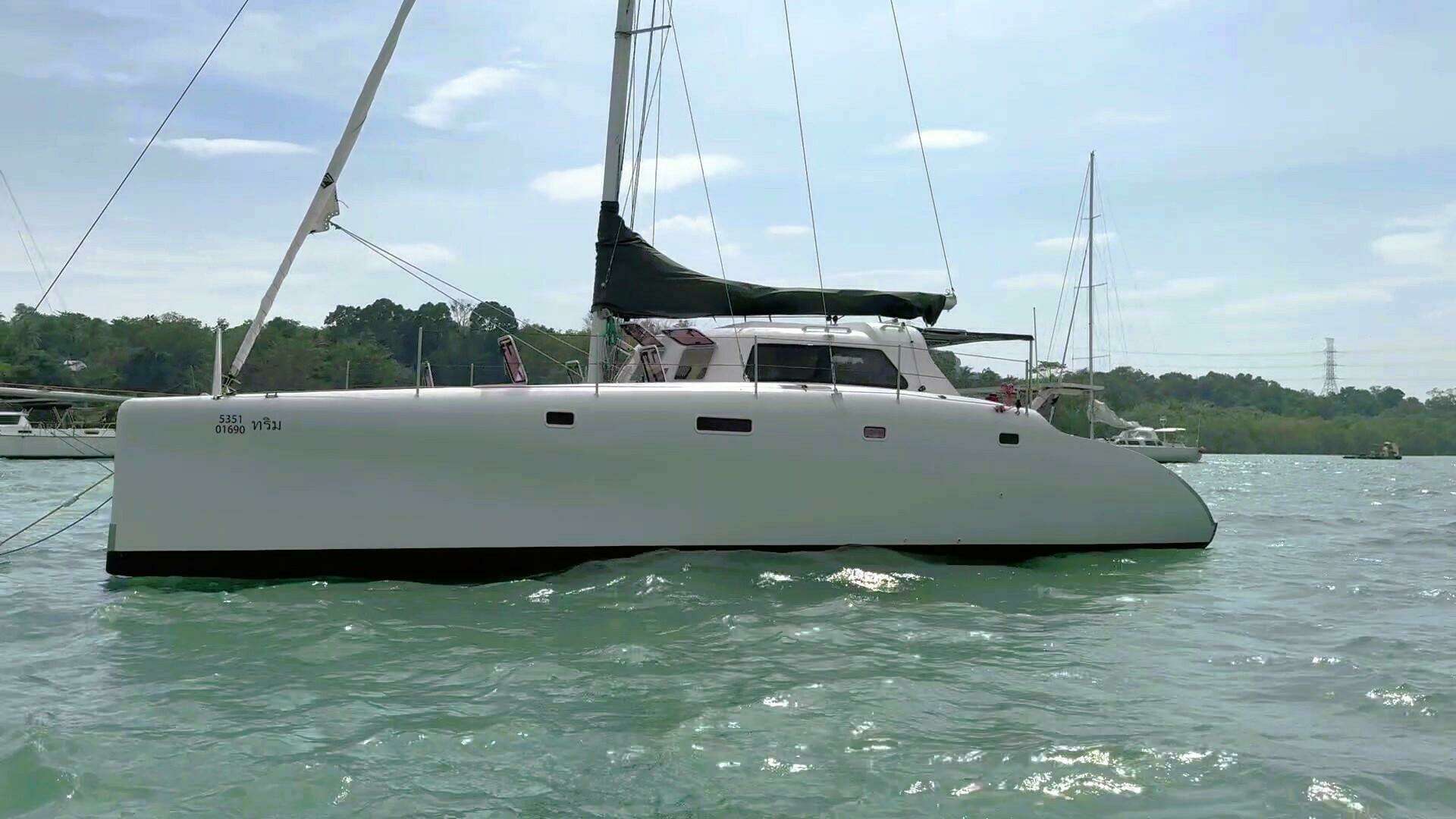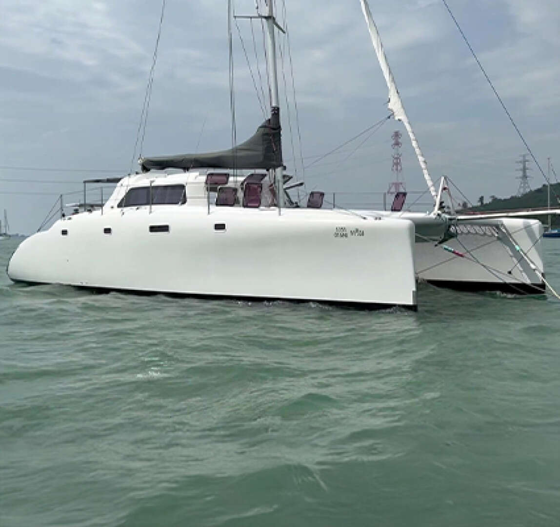 Trim, a fast cruising catamaran designed and built for tropical sailing. Featuring the same proven hull form as the later Asia Catamarans Stealth models, this earlier design still holds its own against newer generations.