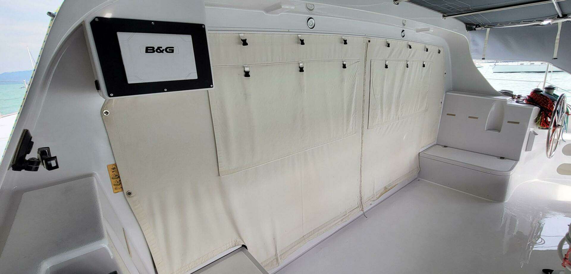 We are proud to present Trim, a fast cruising catamaran designed and built for tropical sailing. Featuring the same proven hull form as the later Asia Catamarans Stealth models, this earlier design still holds its own against newer generations. A simple rig and bowsprit allow for versatile sail configurations, making Trim a highly responsive 39ft catamaran capable of reaching high teens or more under sail.