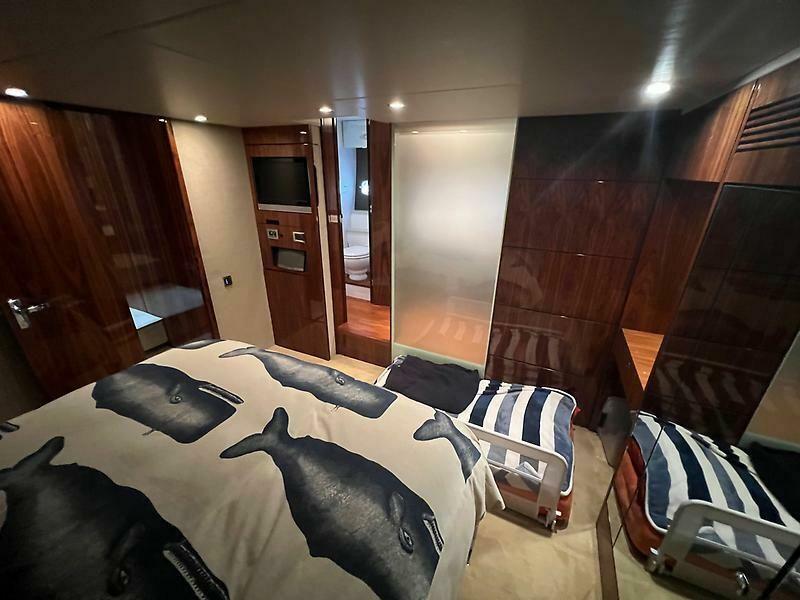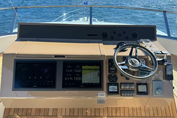 The Squadron 65 has a wonderful `large yacht’ feeling of stylish elegance that embraces you the moment you step aboard.The amount of space and natural light through out is amazing. EXTENSIVE Upgrades over the past 2 seasons from the current owner. Nothing has been left overlooked and the current owner has shown an "Open Checkbook" policy. ++Preliminary Listing Photos and description. Professional Pictures being taken 10-Oct-25++ With an open flybridge creating an open space and a masterpiece of practical design. The lower helm offers great visibility with freshly upgraded Garmin electronics you need for both stations. The cabin layout is spectacular with plenty of room for guests which boasts 3 Ensuite Staterooms plus a Dayhead along with a separate Crew Quarters with Full Head. This is the ONLY fresh water 65 Squadron available and has the reliable CAT C-18’s with low hours with meticulous Service Records and Oil Samples. Don’t miss out on this opportunity to own a truly Turn Key Yacht with low hours, freshwater only use, and extensive upgrades.