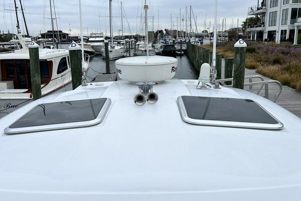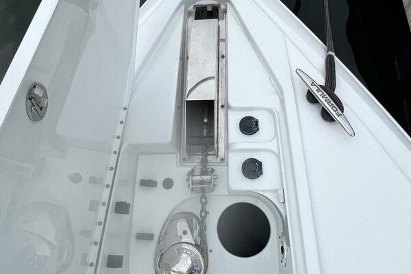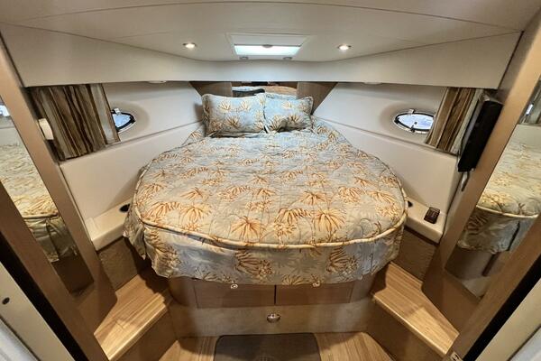 - Two forward stateroom hanging lockers with automatic lights (port side includes two hardwood dovetailed drawers)