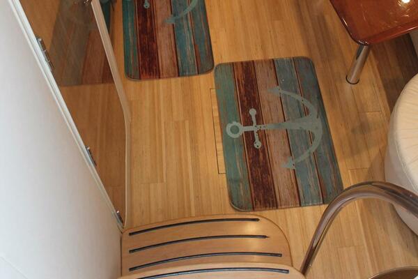 - Molded in-dash forward deck access steps with 316L stainless steel handrail