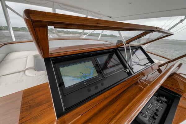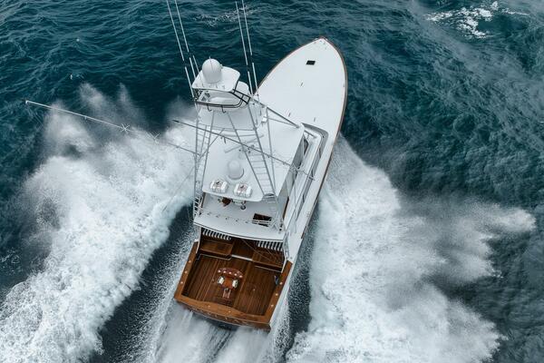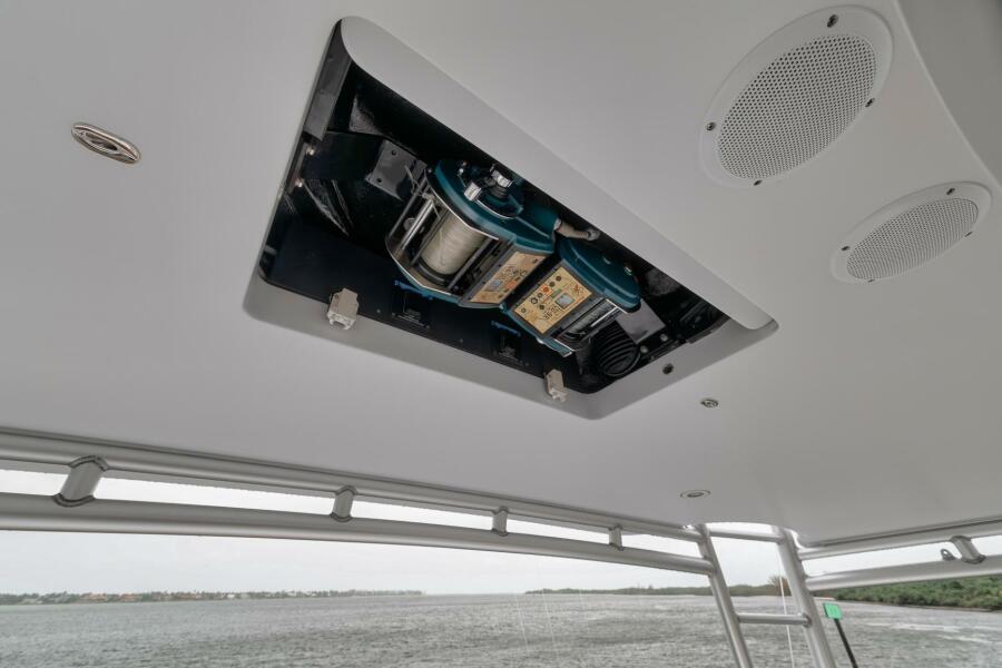 The tower on "Reel Lax" is a finely crafted and highly functional feature, built for serious sportfishing performance while complementing the yacht’s sleek, custom profile. Constructed by a top-tier tower builder—Palm Beach Towers—the structure is lightweight yet rugged, designed to provide excellent visibility and durability in offshore conditions.