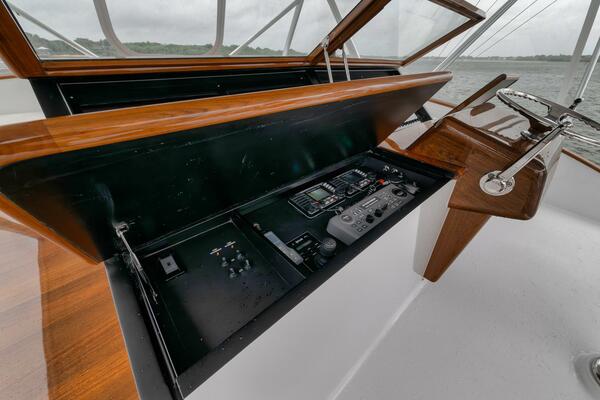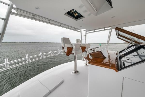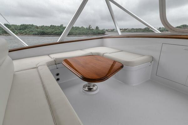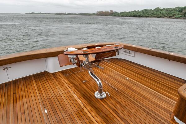The bow is thoughtfully designed to combine functionality, safety, and classic sportfish elegance. Featuring a wide, solid non-skid foredeck, it provides a stable platform for docking, anchor handling, or simply enjoying unobstructed views at the front of the yacht.