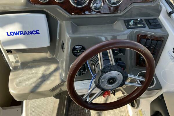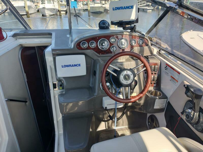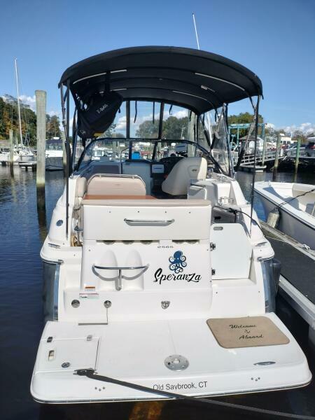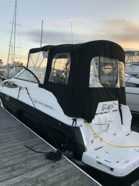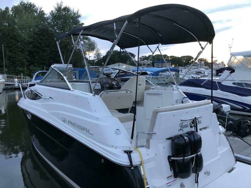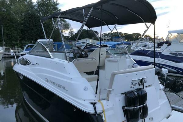 “SPERANZA” has been kept in excellent condition. All maintenance is up to date. Powered by a single Volvo Penta 5.0 GXi with DPS drives, stainless steel props and 426hrs. Some features include Lowrance HDS 7M with Navionics Chip, a Sunbrella Enclosure with Isinglass, 8,000 btu Marine Air Conditioning, New Cockpit Carpet and Custom Winter Cover. This MUST-SEE Regal 2565 Express Cruiser is a great family boat with plenty of cockpit room and cabin space to sleep 4 comfortable.