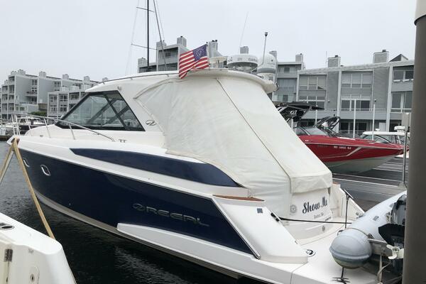 Welcome aboard 'Show Me', a 2011 Regal Sport Coupe powered by Volvo Penta D4-300 inboards with IPS drives and under 800 hours. Stunning color scheme with recently polished blue hull, beige cushion package, teak decks and white stamoid canvas enclosure.