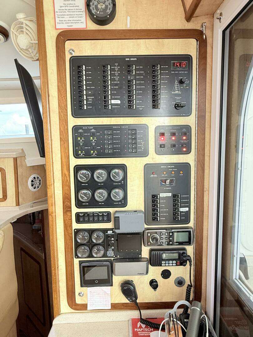 - Yanmar engine gauges: RPM, oil pressure, temperature