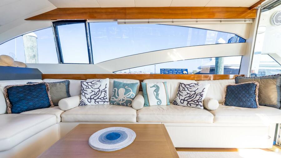 - Added a center table and day bed cushions to the port side bedroom to creat the option of having a secondary day Solon and still remain a bedroom with two twin beds for night time sleeping accommodations. “Awesome added feature for families with children”