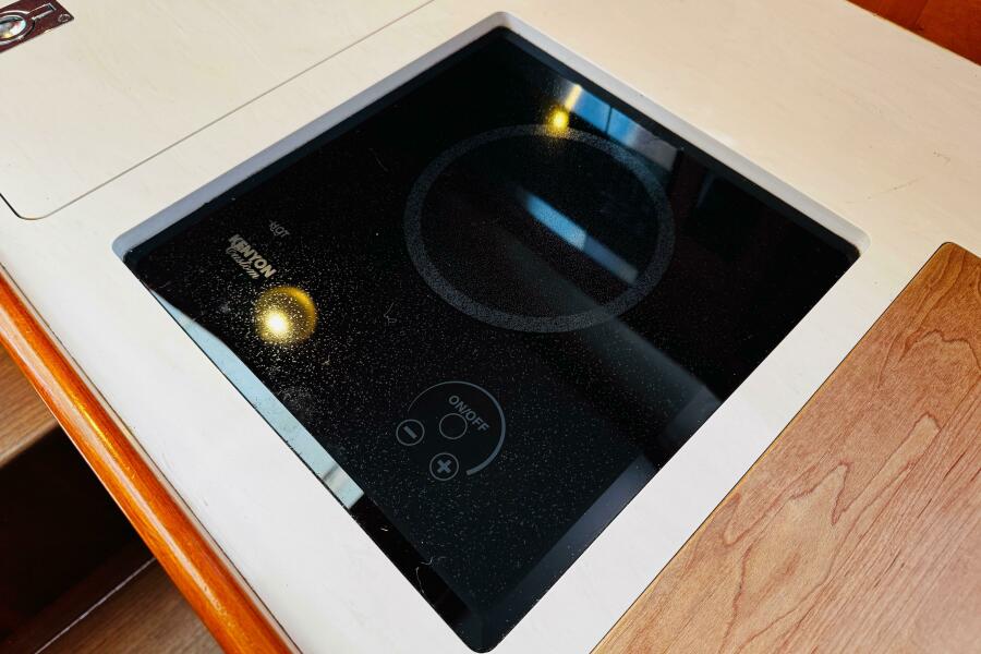- Single electric burner cook-top with Corian cover.