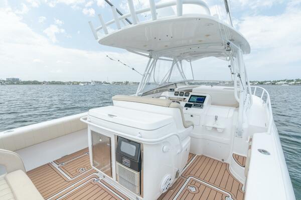 New to the market is this extremely clean, well-kept 2012 Intrepid 35 Walkaround. This 2012 Intrepid 35WA is the perfect layout for any boater. With her open cockpit, it attracts the hardcore angler as well as the weekend warrior who enjoys taking out the family. This Intrepid has a beautiful L shaped couch at the bow with a table making the perfect spot for lunch/dinners on board. Moving forward, you will find a spacious cabin with new AC being installed, queen V-berth, galley and full head and shower. As far as performance, this 2012 Intrepid 35 Walkaround is powered by twin 350HP V8 Yamaha outboards, giving her the power needed to get from point A to B in a timely manner. This boat eats up rough seas and provides and smooth safe ride for all guests on board. With all the recent upgrades and condition of this boat, she is worth looking at. Call today to set up a showing to see this Intrepid 35WA!